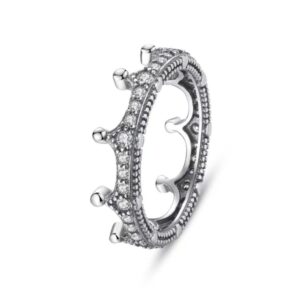 S925 Sterling Silver Jewelry Set of Three Crown Ring Stud Earrings Necklace Silver Jewelry Set
