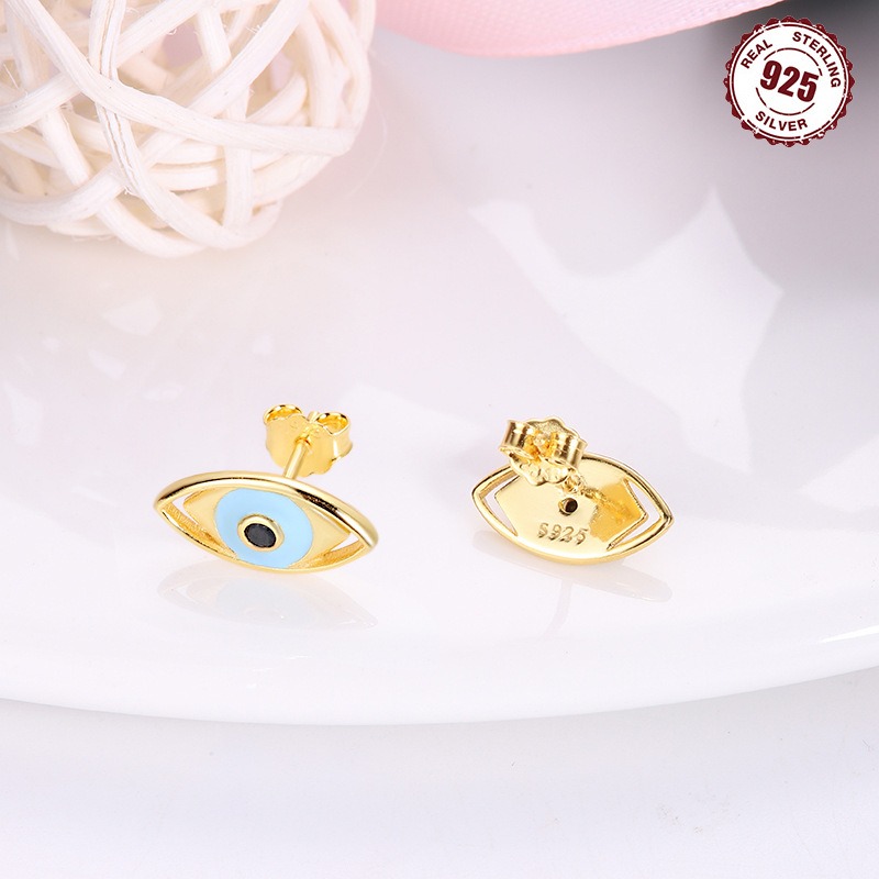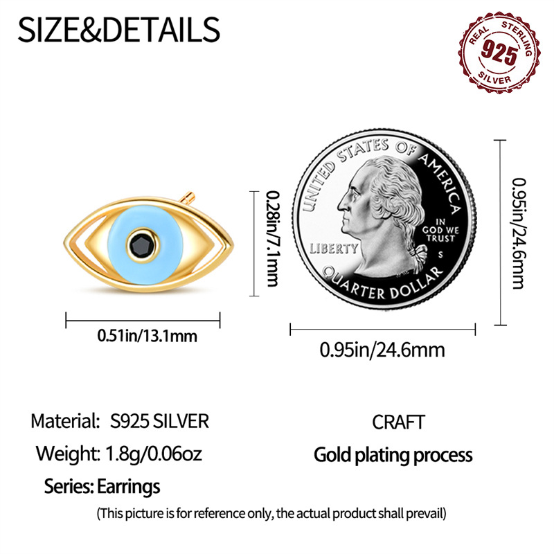 S925 Sterling Silver Devil's Eye Stud Earrings quantity