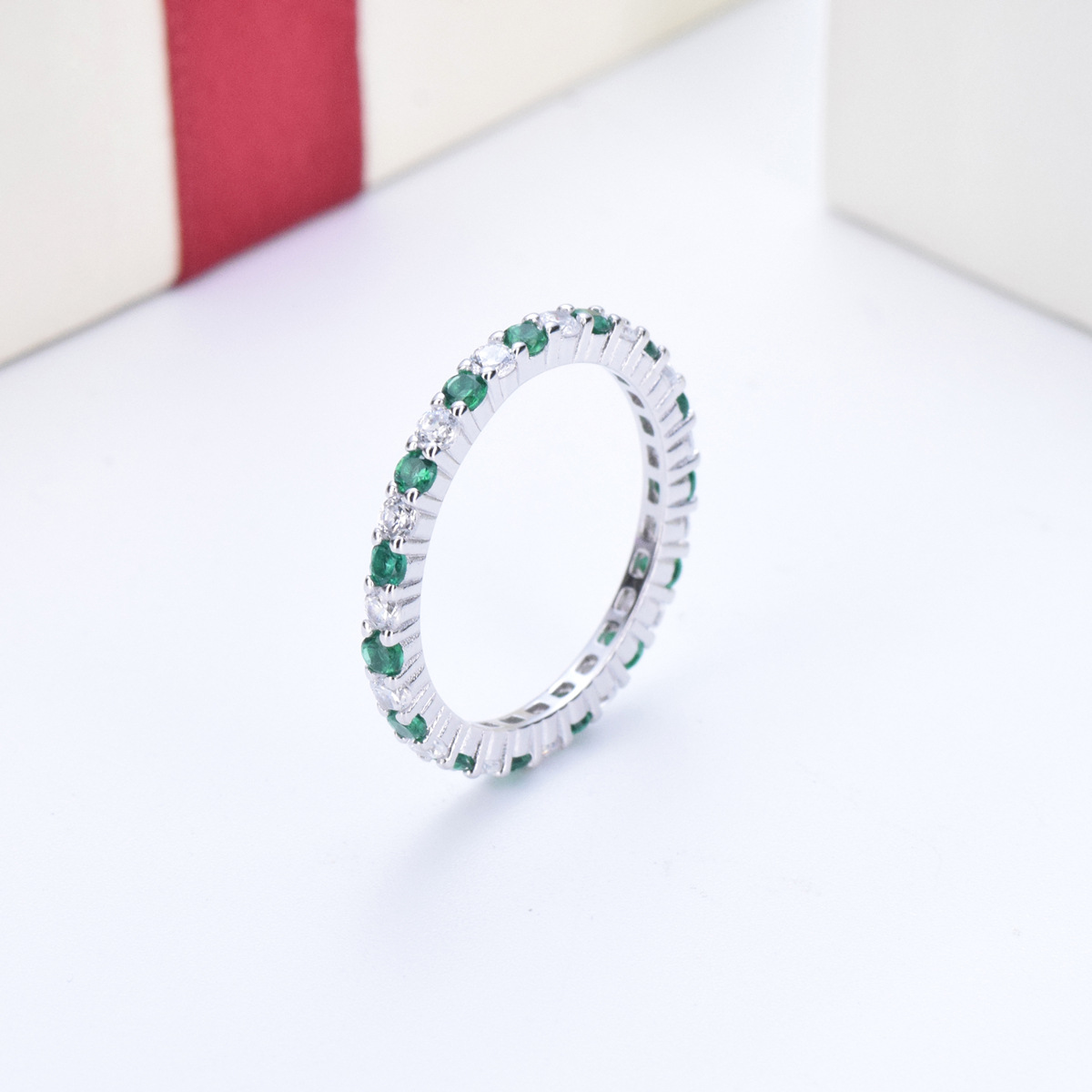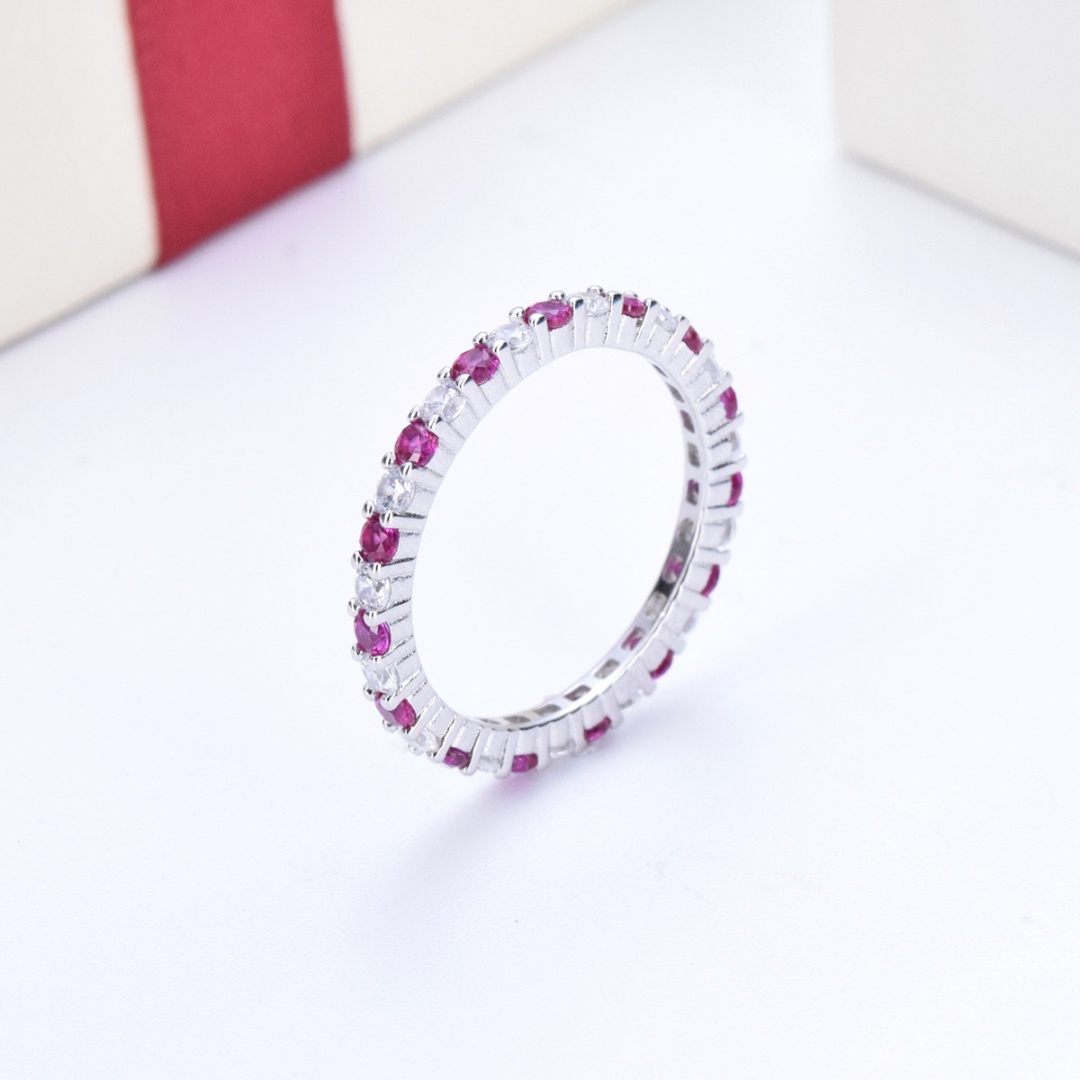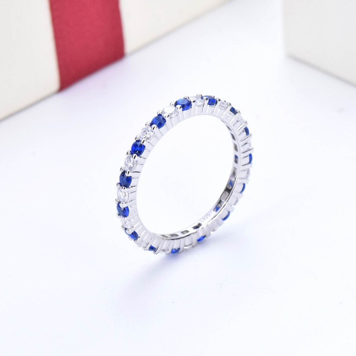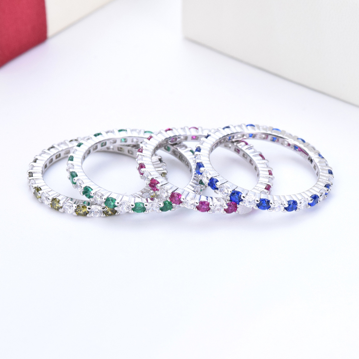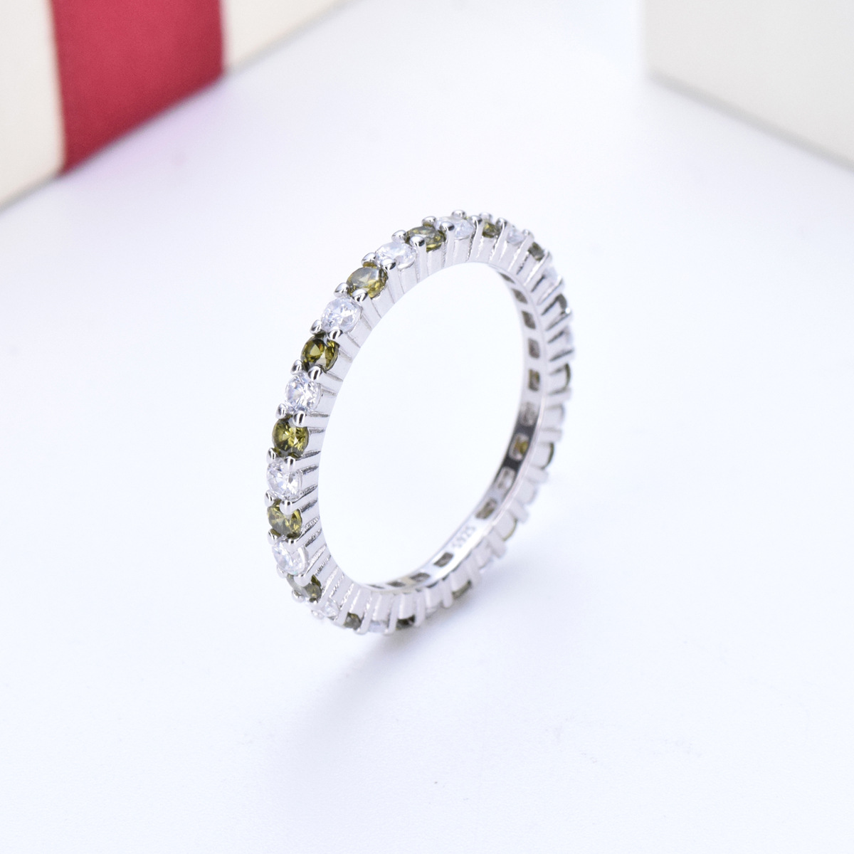 S925 sterling silver diamond colored zircon single row diamond ring