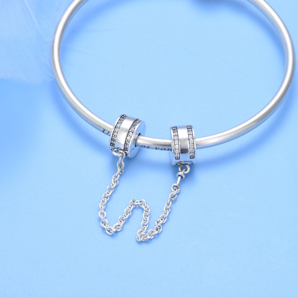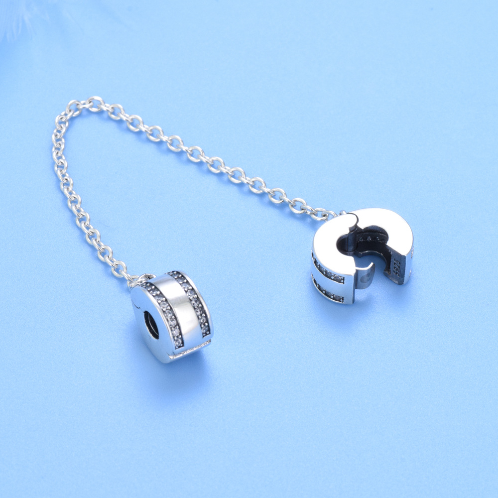 S925 Sterling Silver DIY Beaded Pendant Buckle Safety Chain