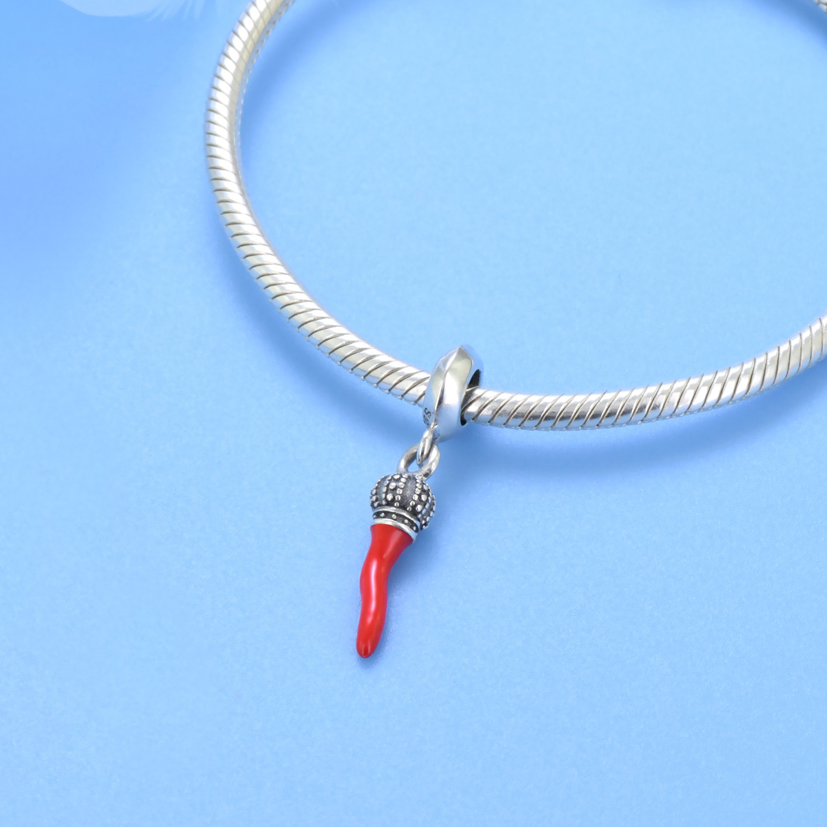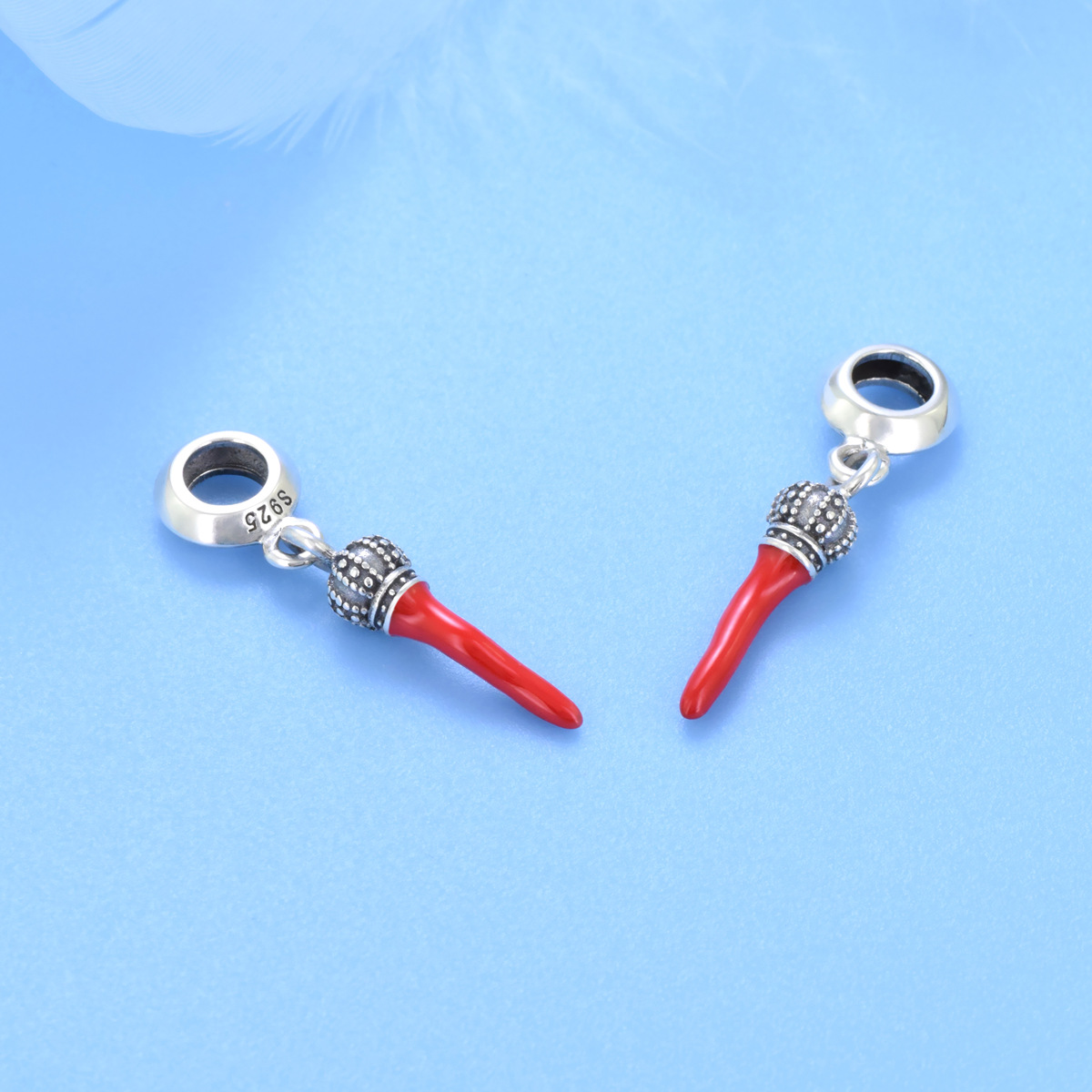 S925 Sterling Silver DIY Beaded Pendant Red Little Pepper