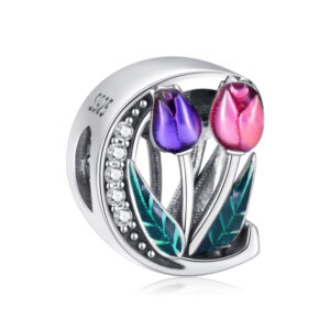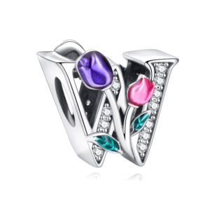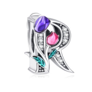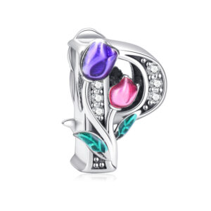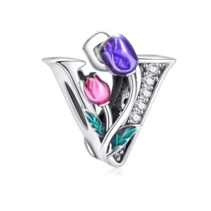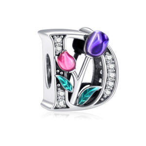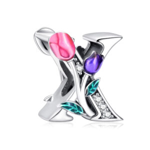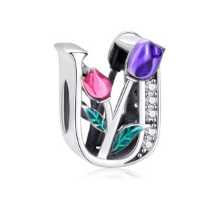 S925 sterling silver DIY beaded pendant tulip 26 letters in english