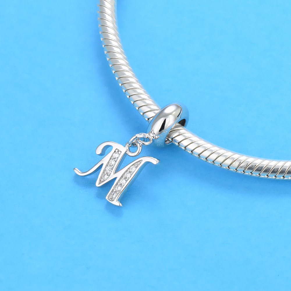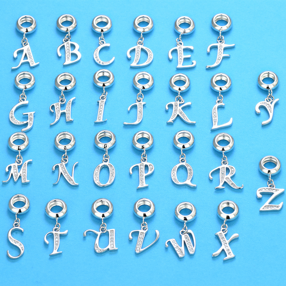 S925 sterling silver DIY bracelet beaded 26 letter pendant