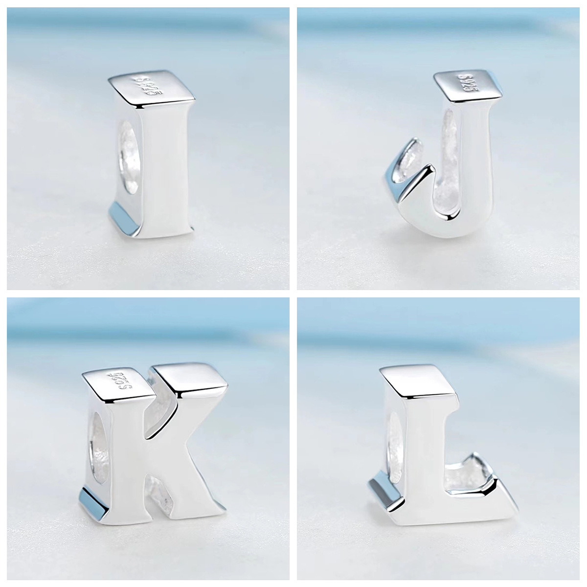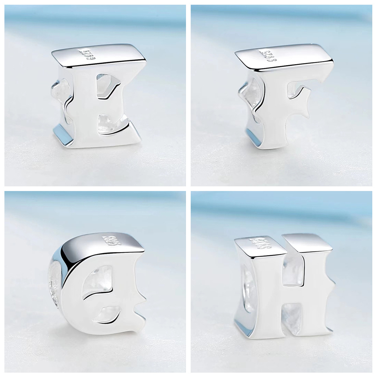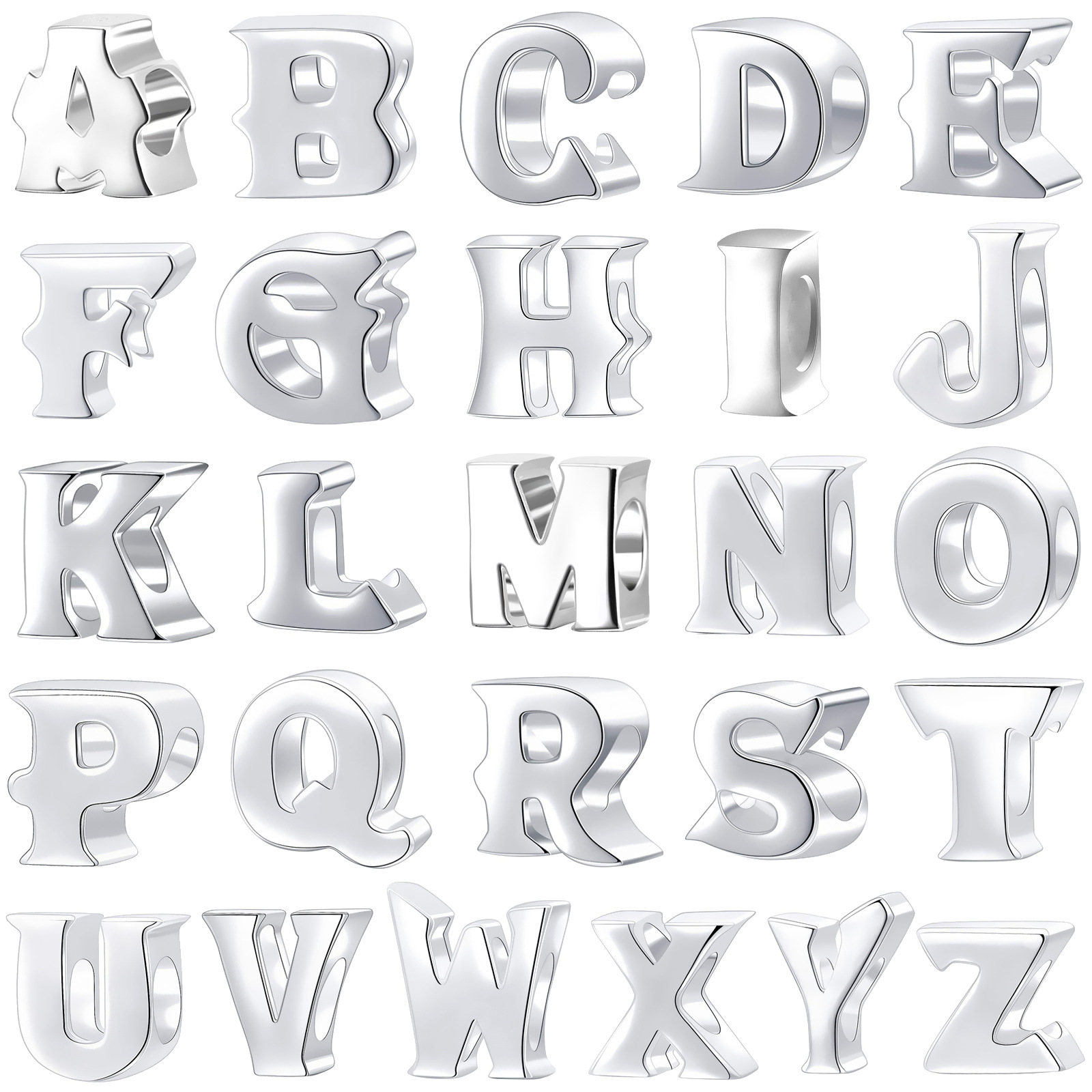 S925 sterling silver DIY bracelet beaded 3D three-dimensional 26 letter pendant