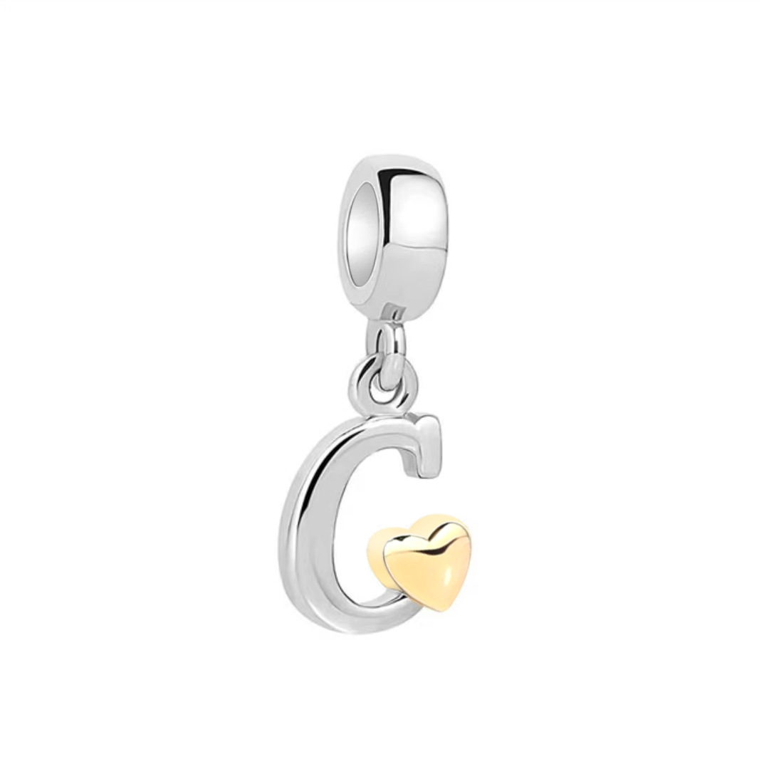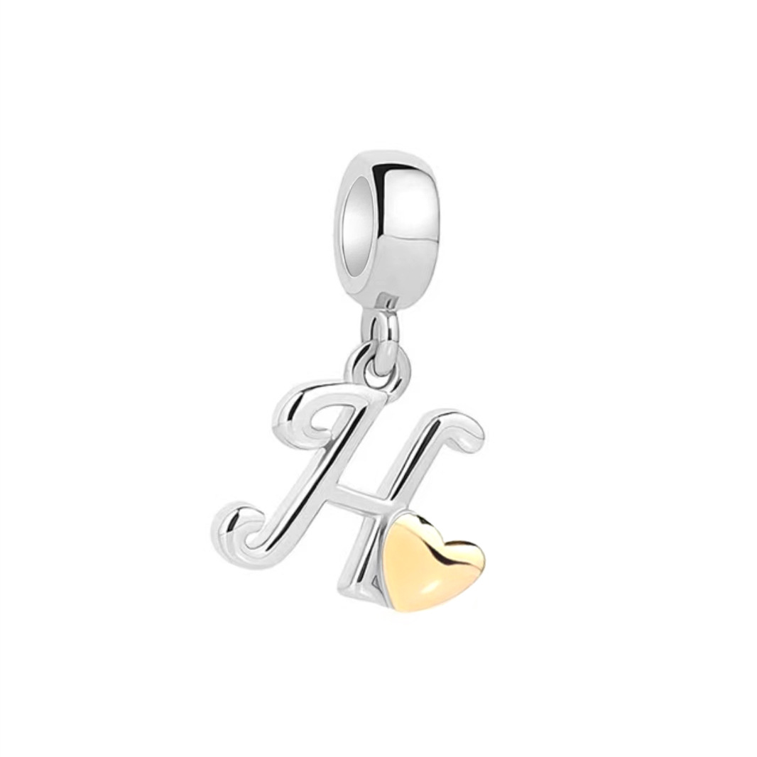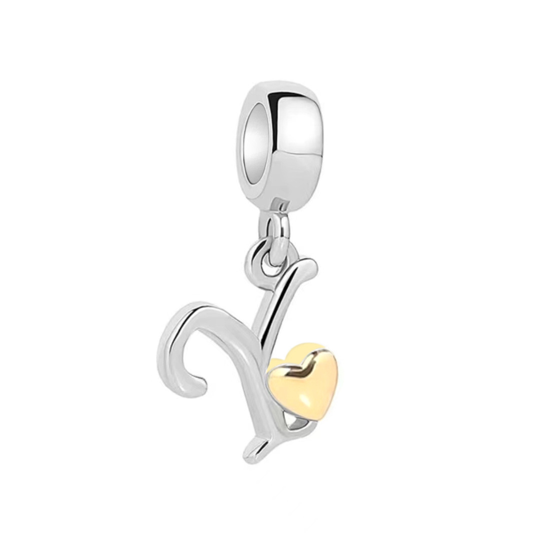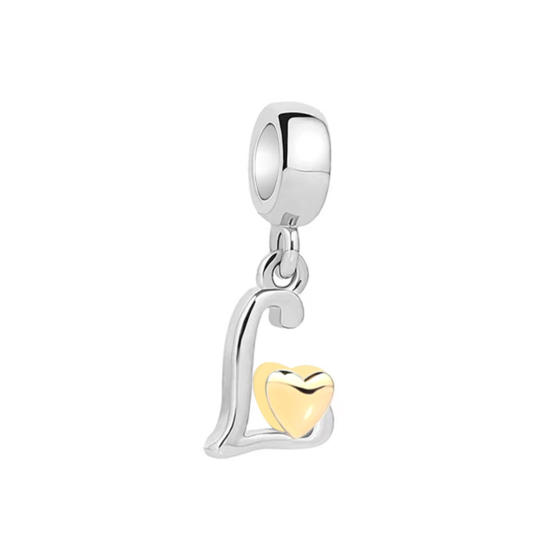 S925 sterling silver DIY bracelet beaded gold heart 26 letter pendant