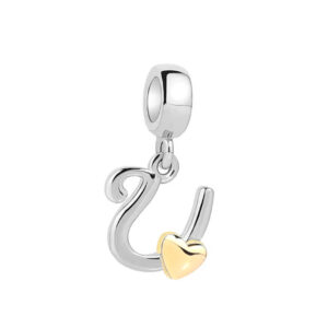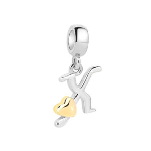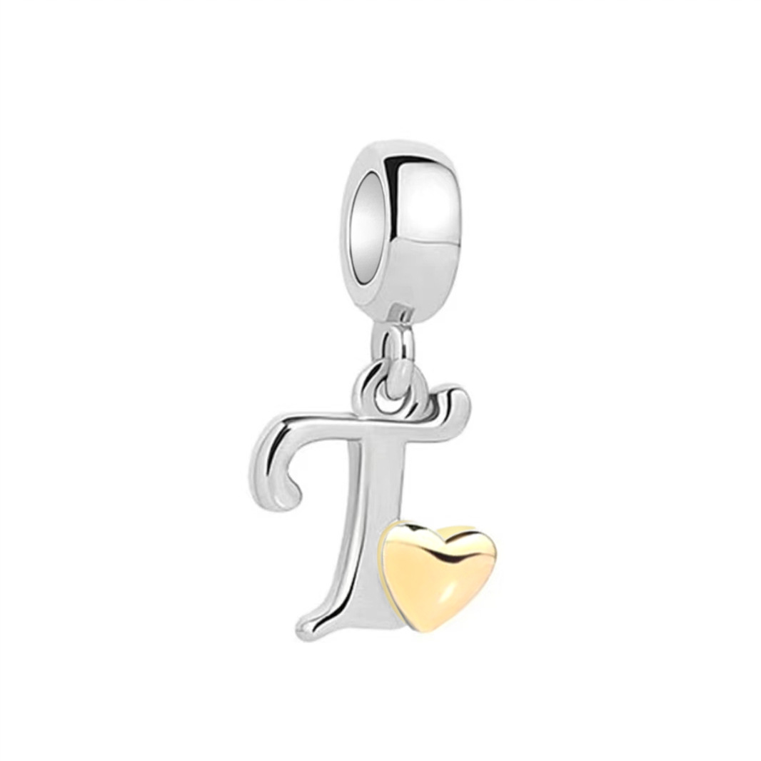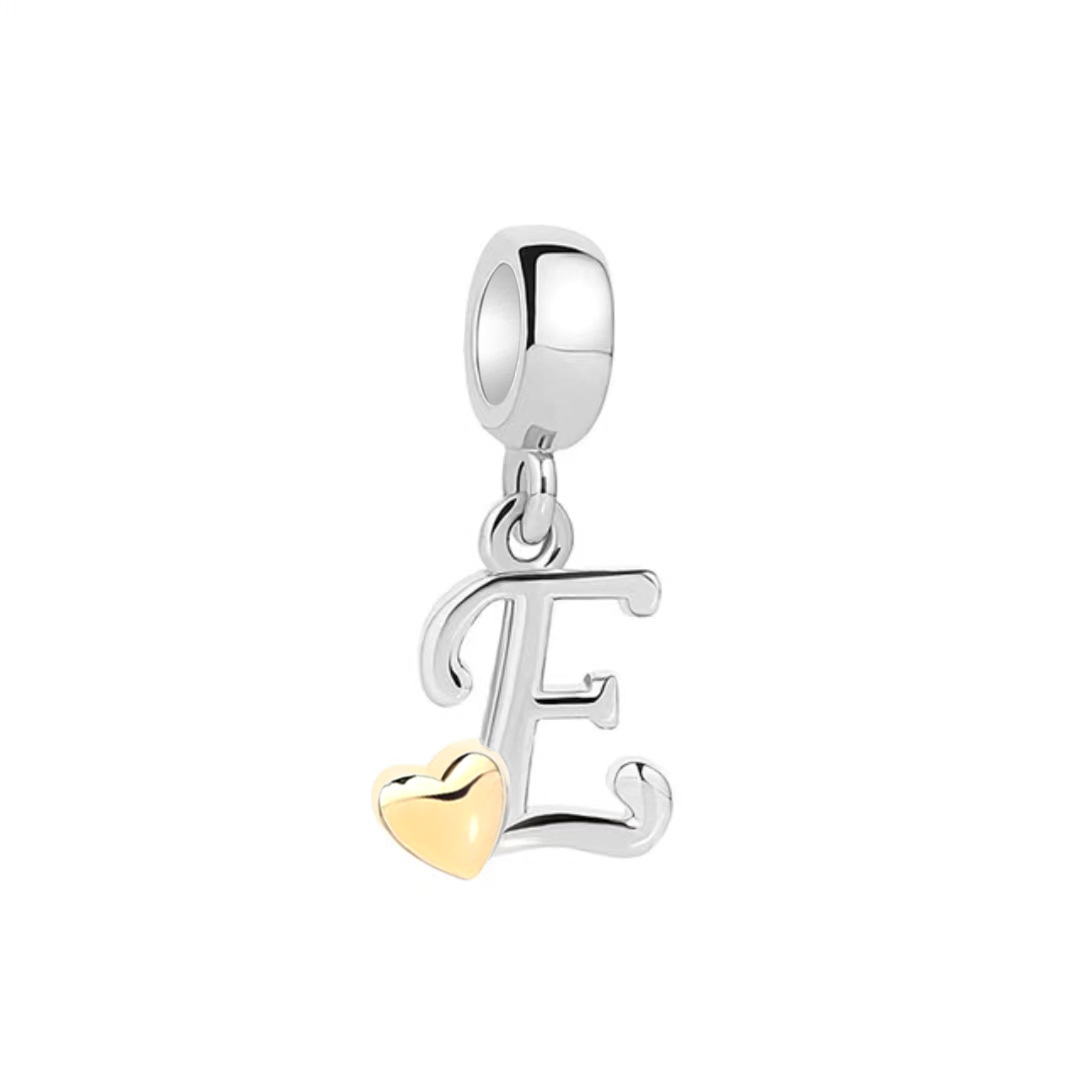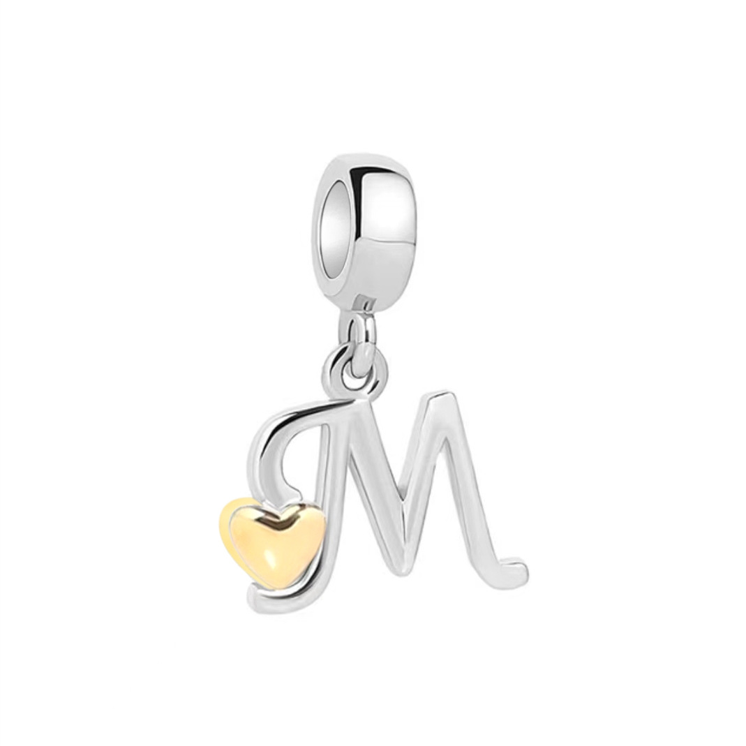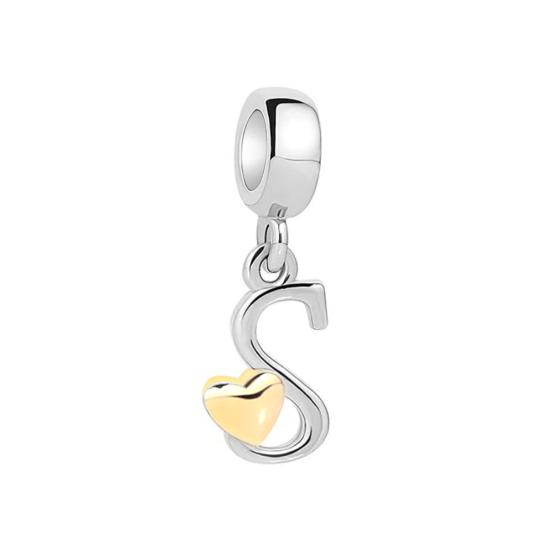 S925 sterling silver DIY bracelet beaded gold heart 26 letter pendant