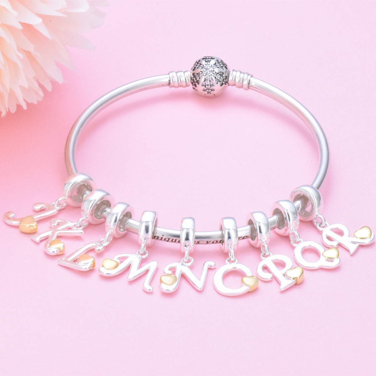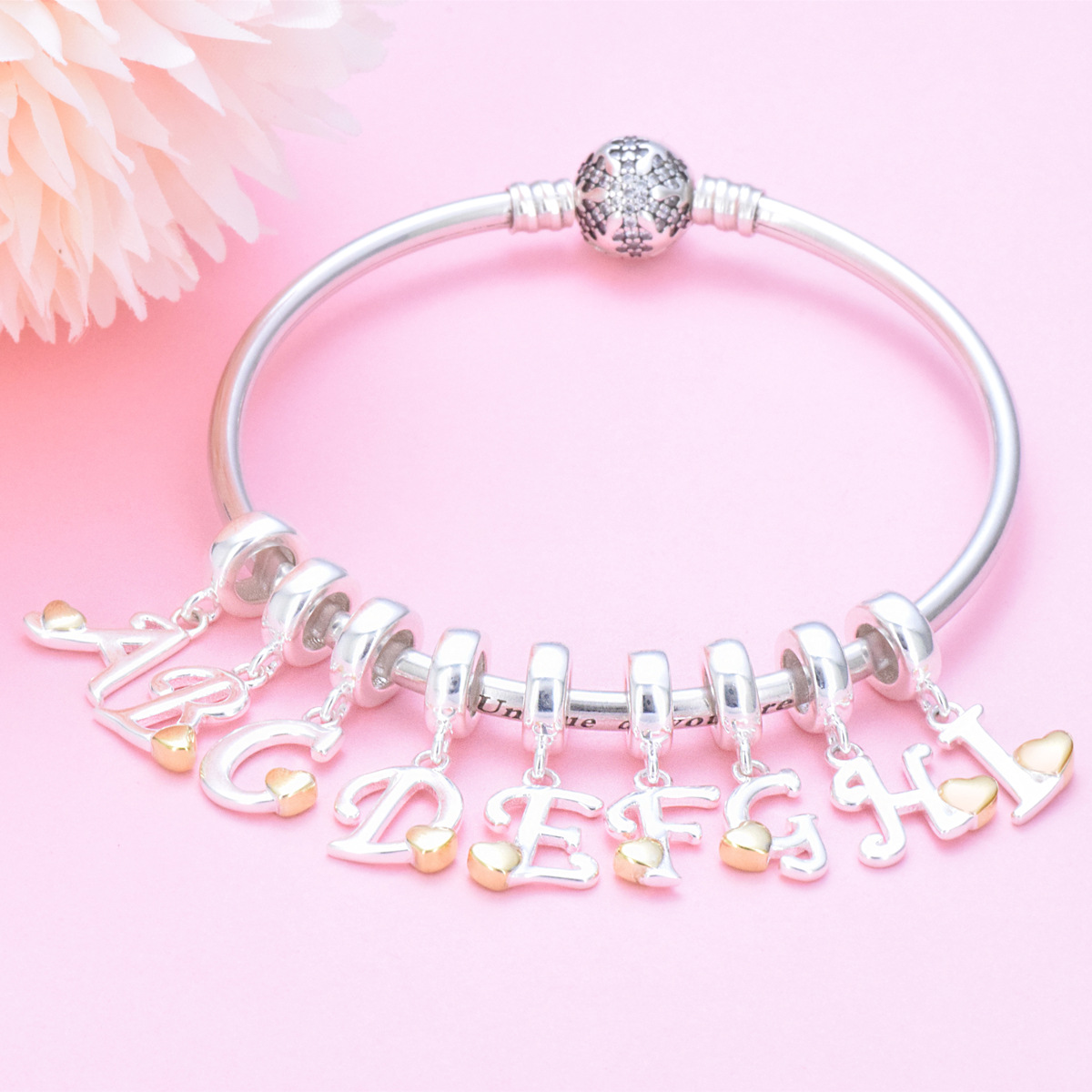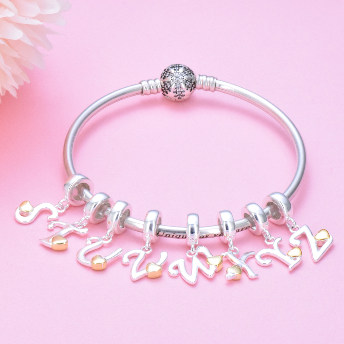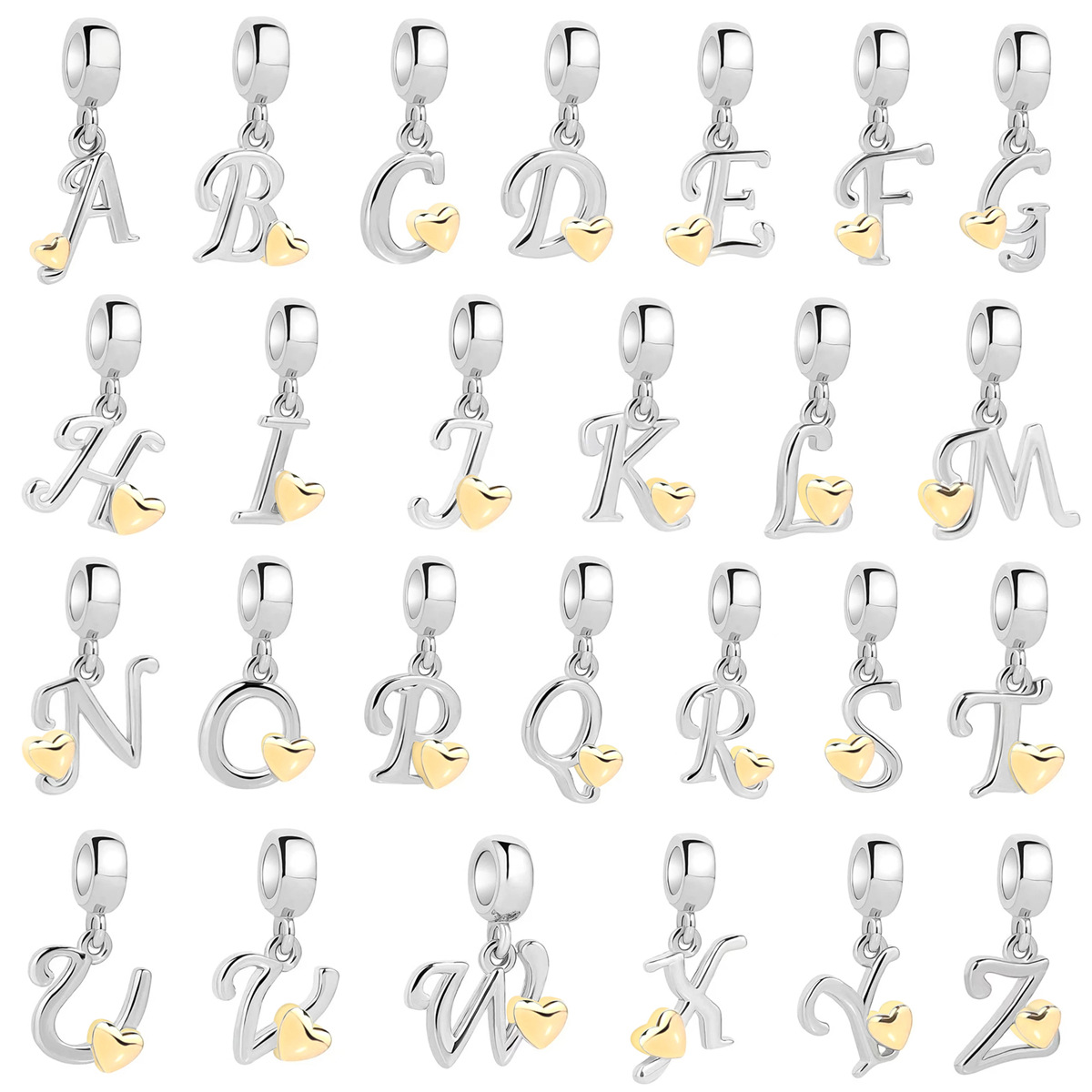 S925 sterling silver DIY bracelet beaded gold heart 26 letter pendant