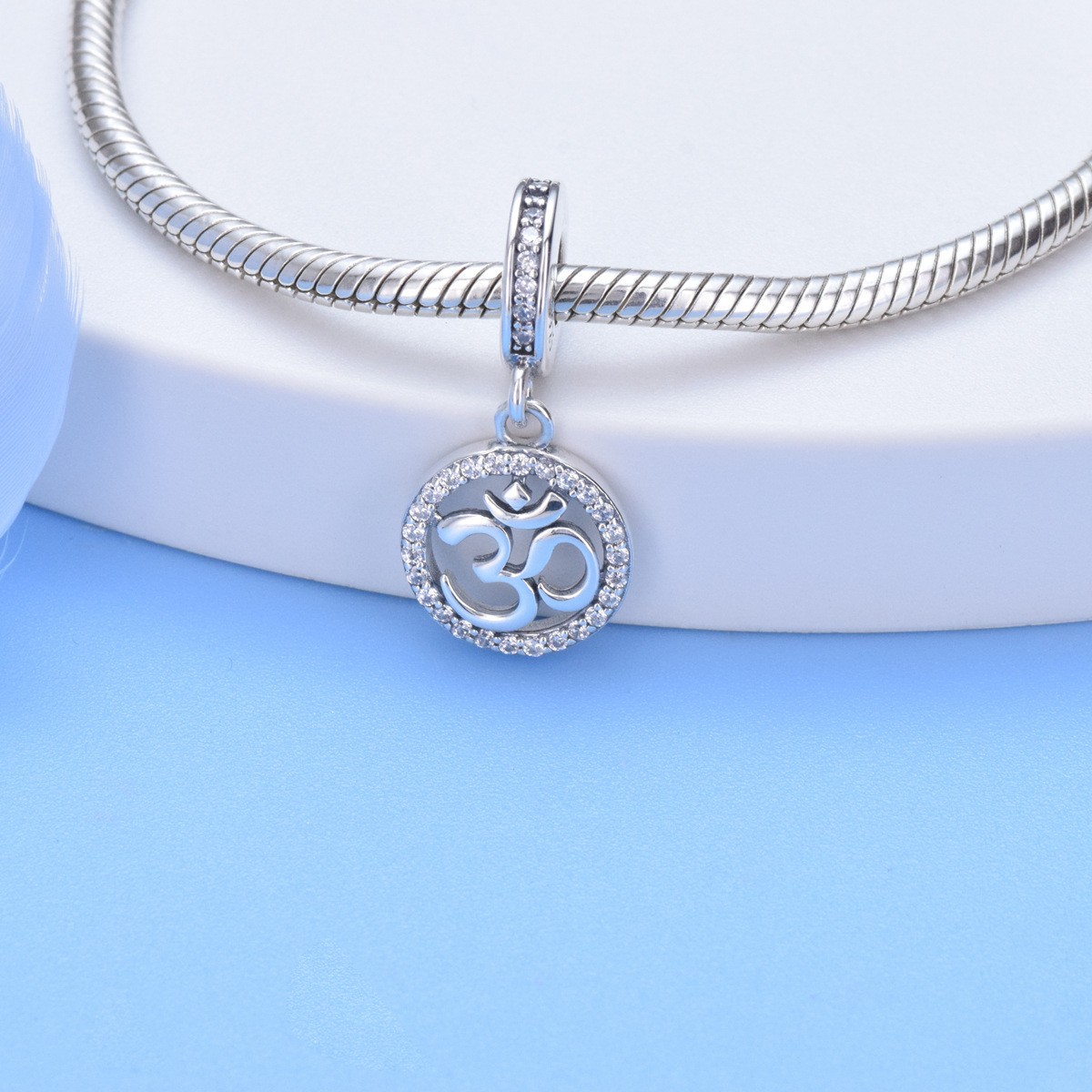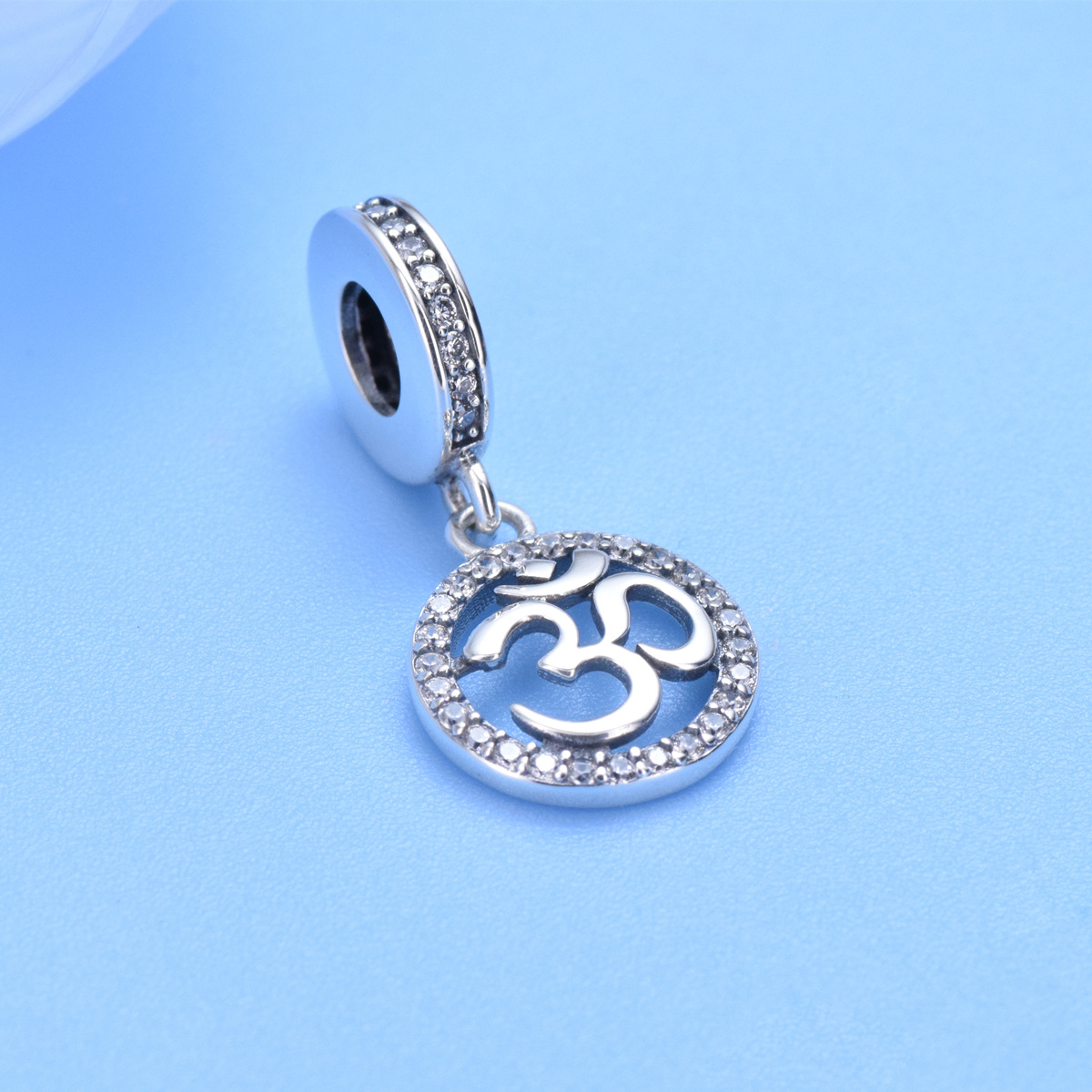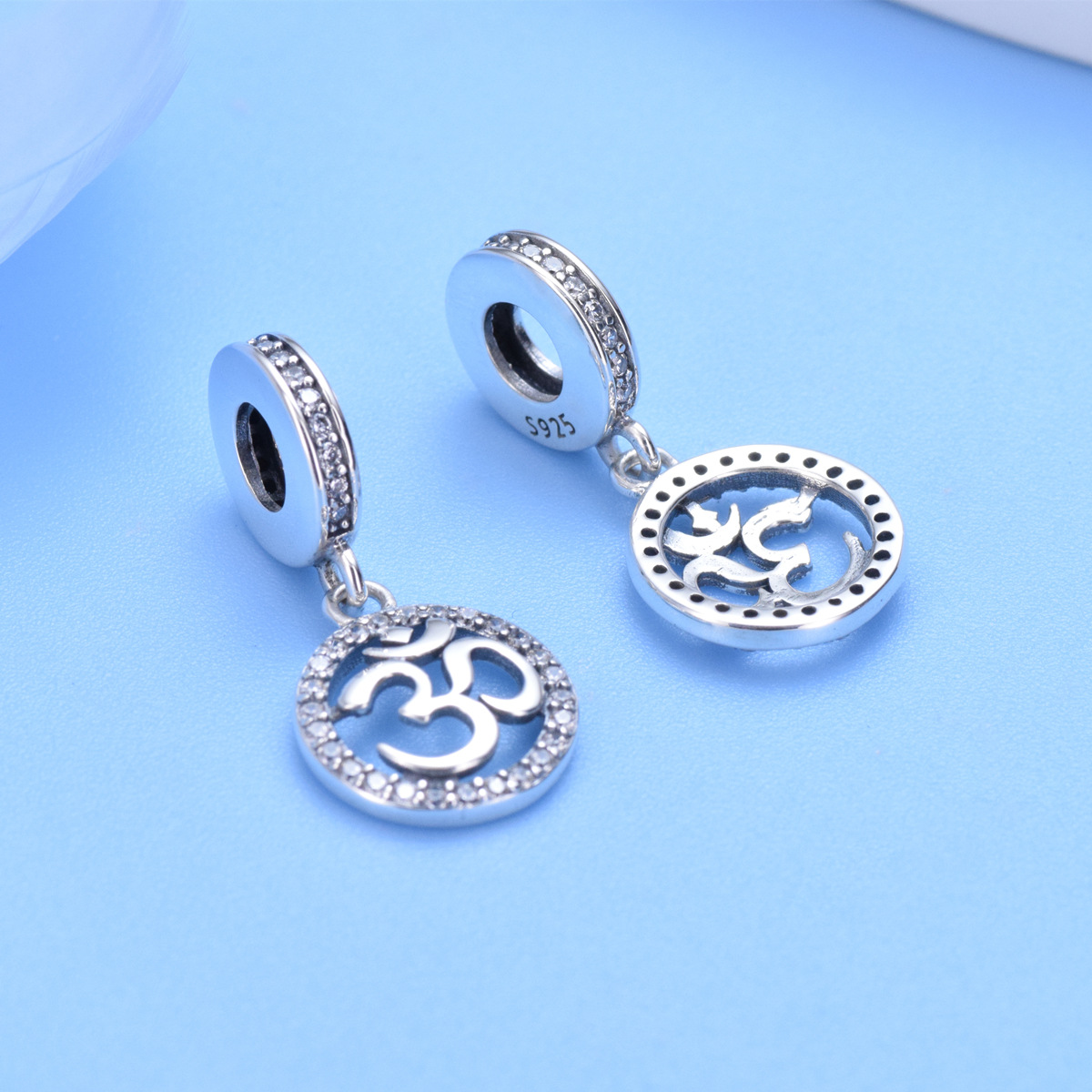 S925 sterling silver DIY bracelet beaded openwork OM character pendant