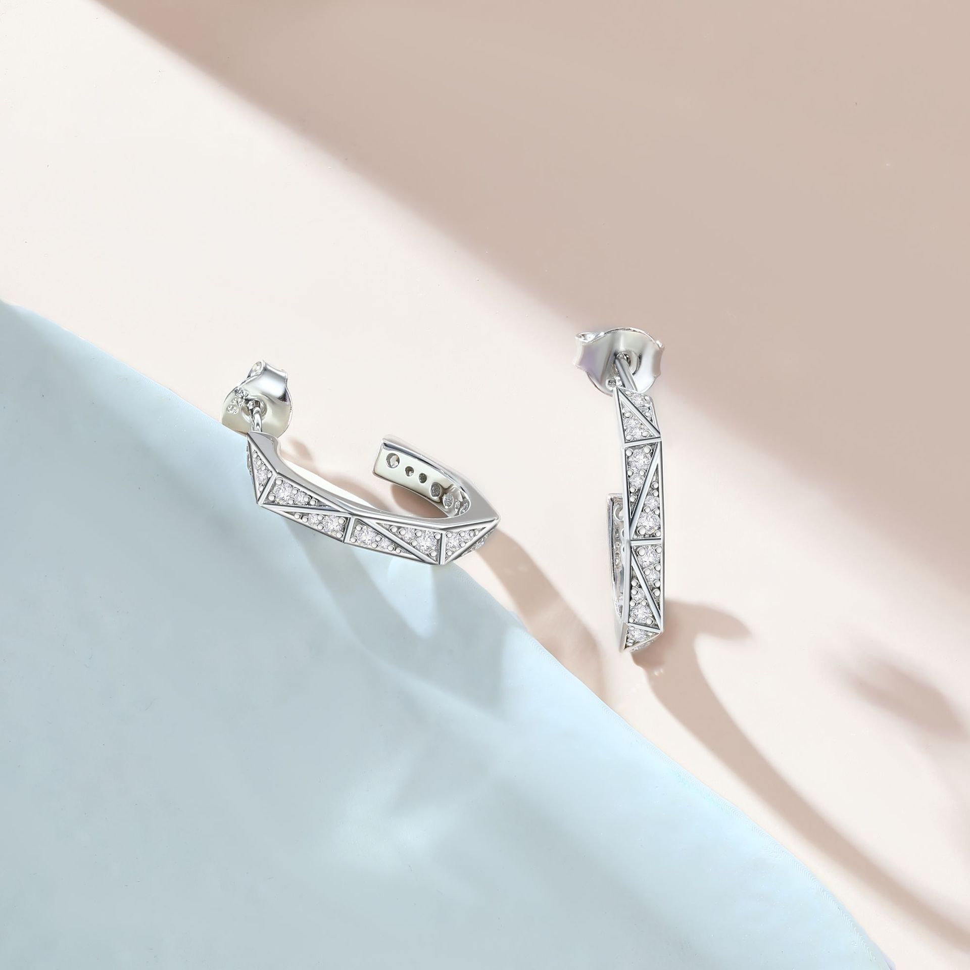 S925 sterling silver double c zircon stud earrings jewelry wholesale