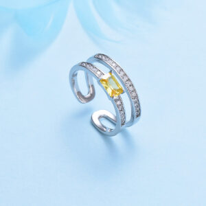 S925 sterling silver double row inlaid high quality zircon ring adjustable ring