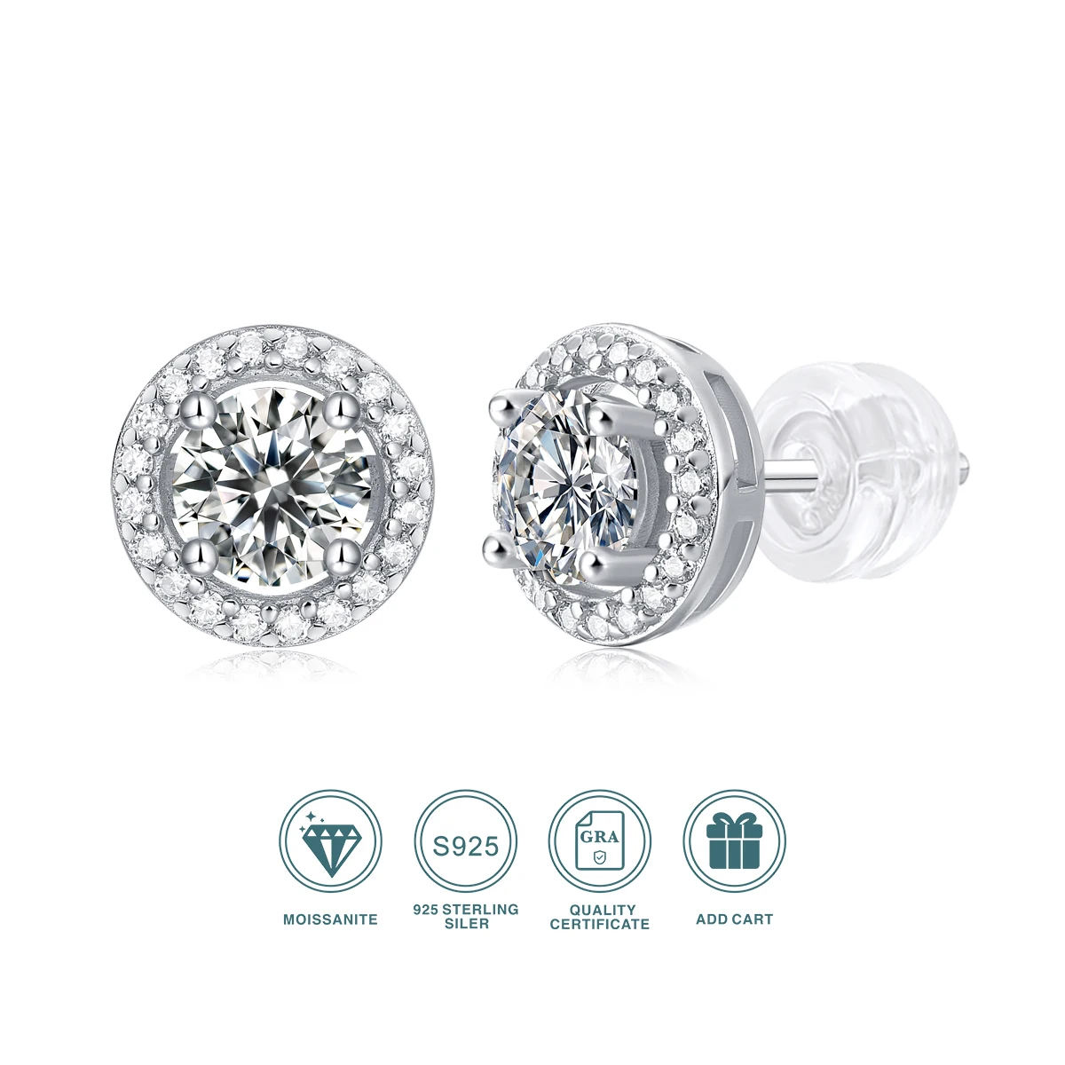 S925 Sterling Silver Earring 0.5CT Moissanite Round Earrings