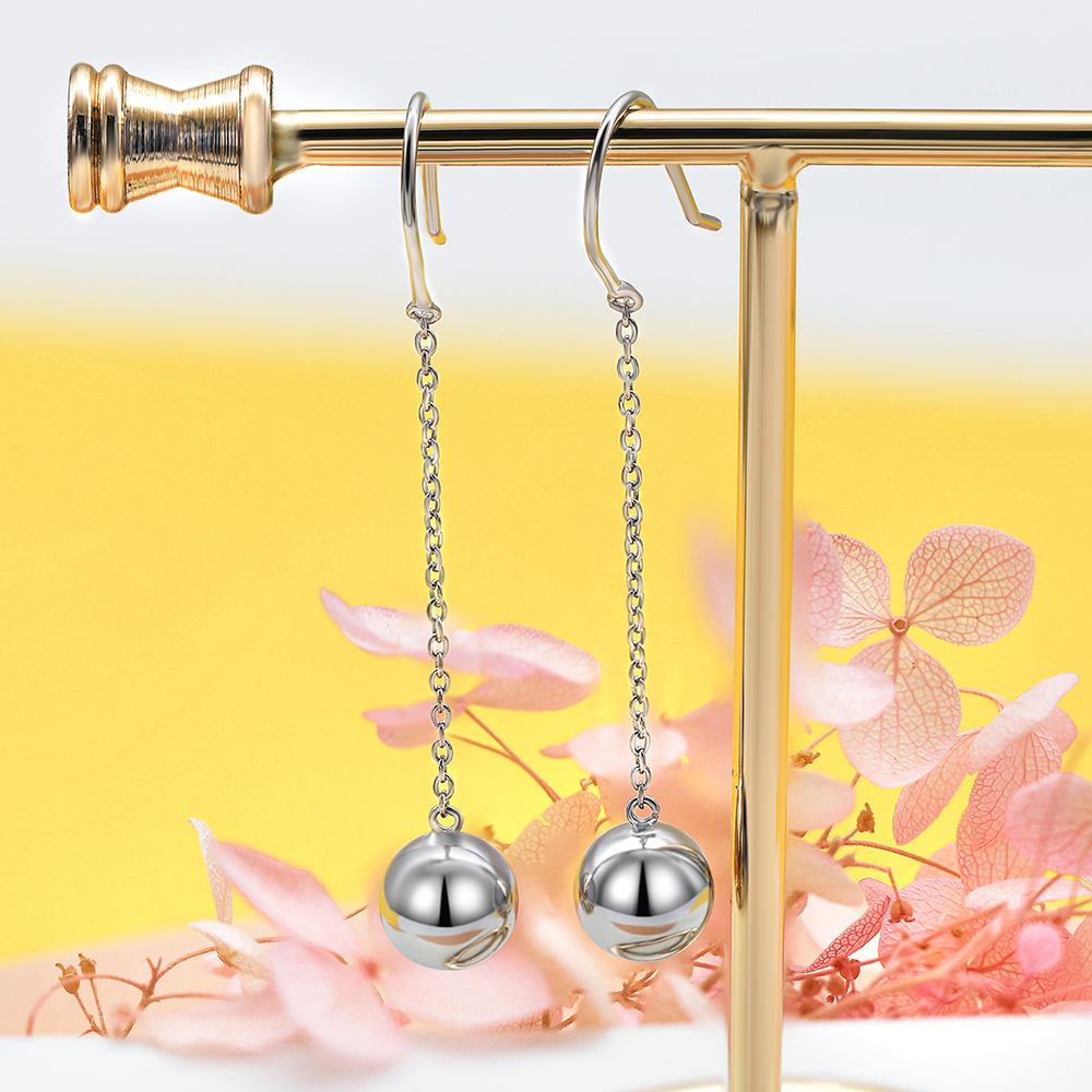S925 sterling silver earrings long simple glossy round bead ball pearl earrings female luxury temperament wholesale