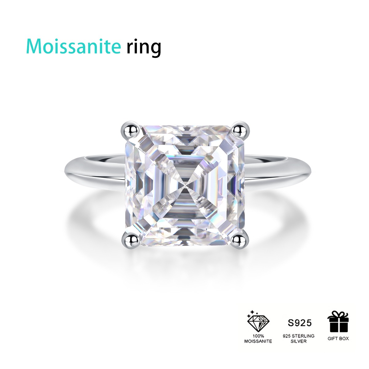 S925 Sterling Silver High Carbon Diamond 5A Zircon Square Diamond Ring Crystal Stud Earrings Women’s Square Pendant Necklace Jewelry Set