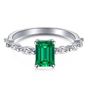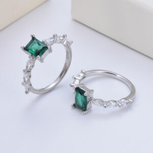 S925 sterling silver four-claw rectangular diamond crystal green zircon ring