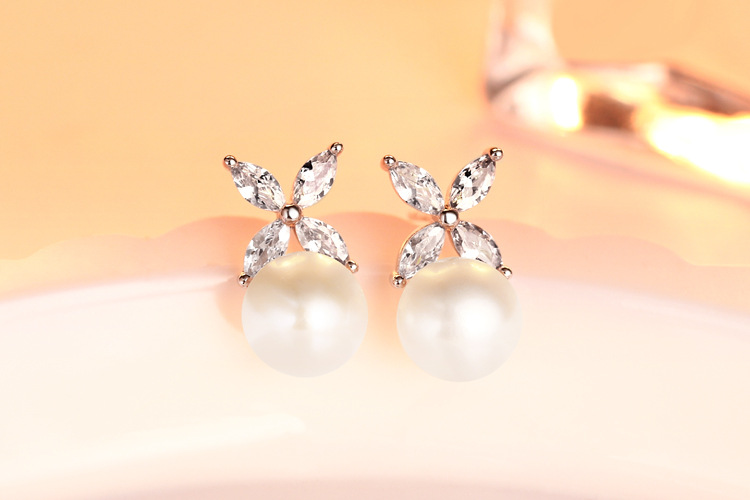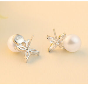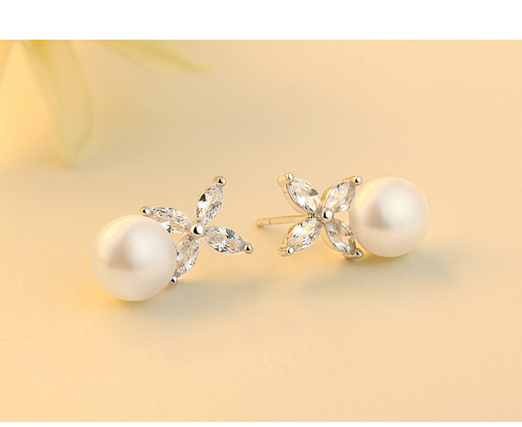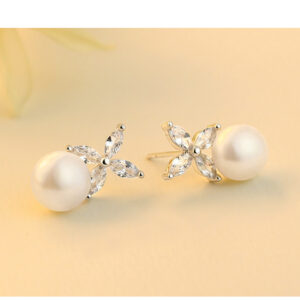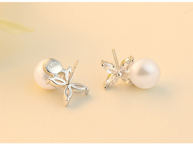 S925 sterling silver four-leaf clover natural pearl stud earrings