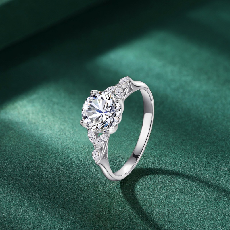 S925 Sterling Silver Four Prong Diamond Ring Round Ring
