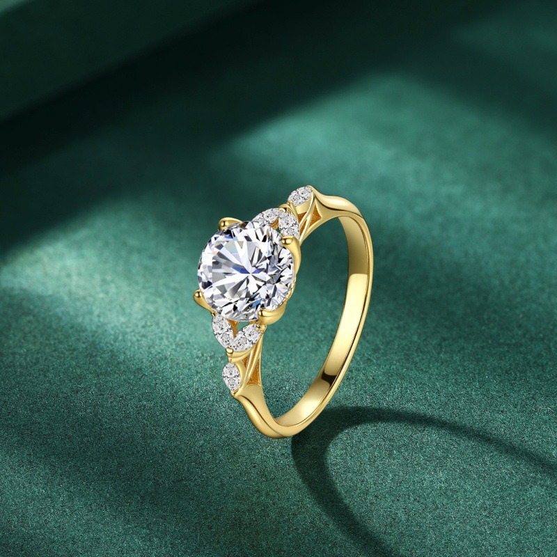 S925 Sterling Silver Ice Flower Cut Ring Women’s Zirconia Gold Plated Ring