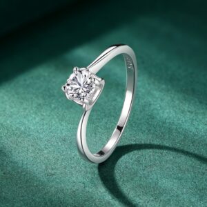 S925 Sterling Silver Four-Prong Zircon Ring for Women