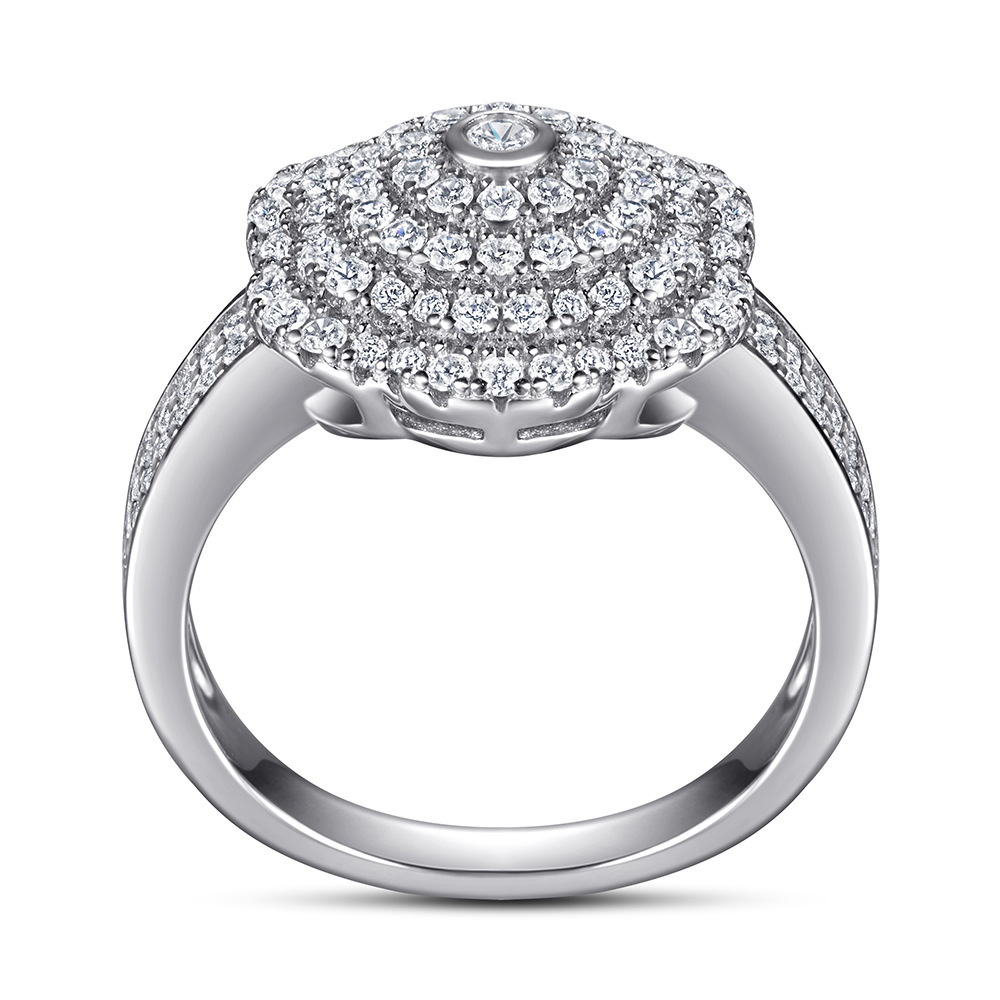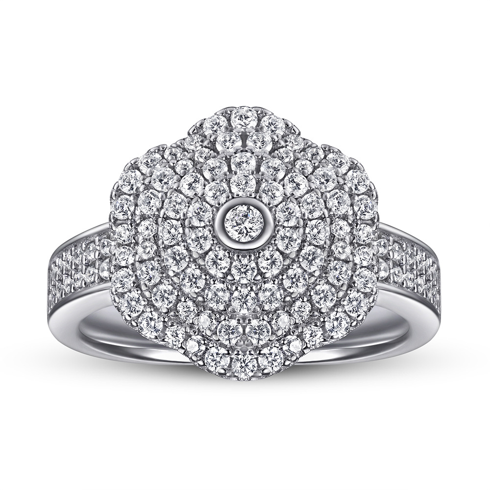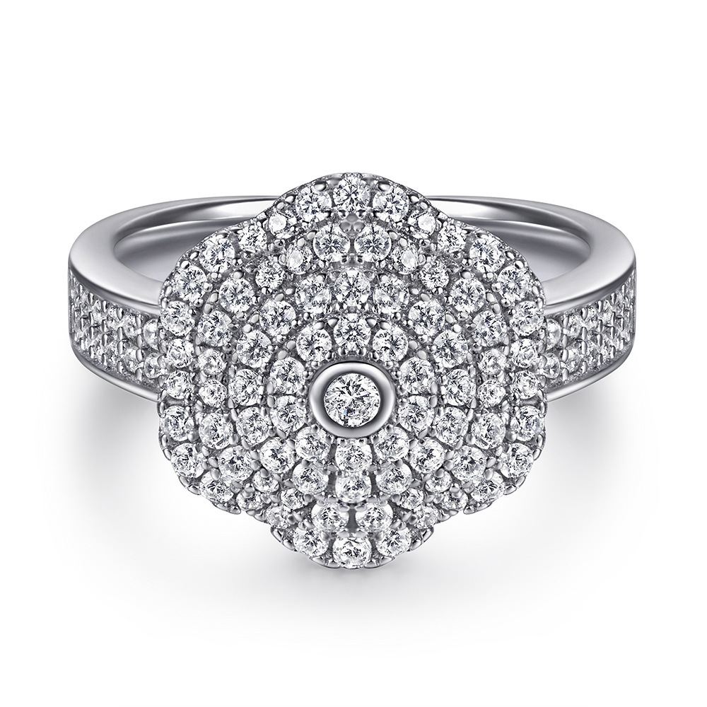 S925 sterling silver full diamond flower sterling silver ring European and American exaggerated inlaid zircon wedding ring jewelry wholesale