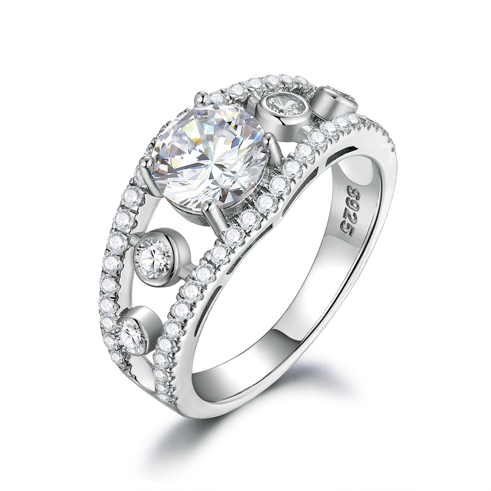 S925 sterling silver hollow crown ring women’s high-end explosive women’s ring 1.2ct zircon diamond ring