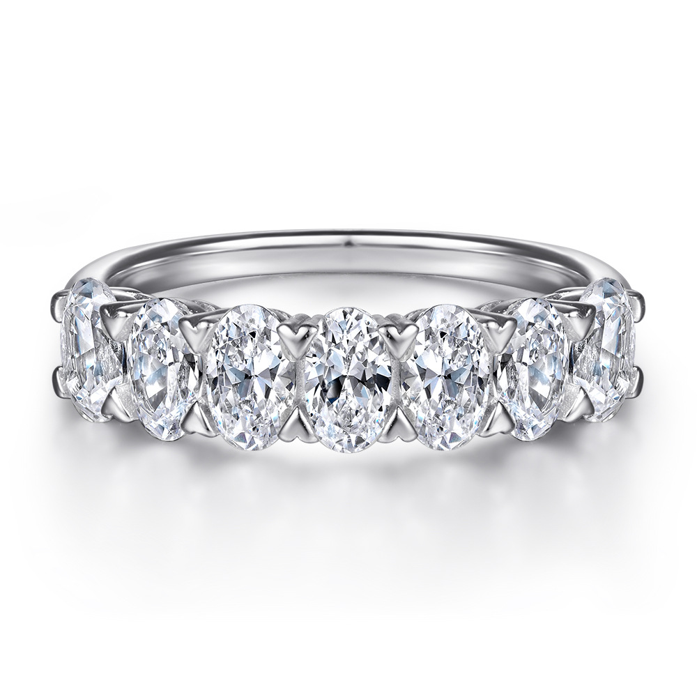 S925 sterling silver inlaid egg-shaped zirconia half-hoop diamond ring