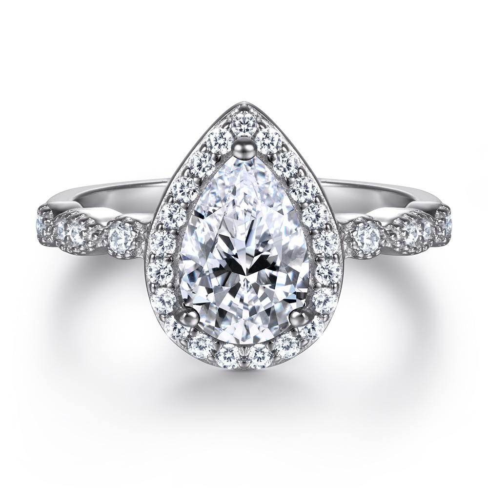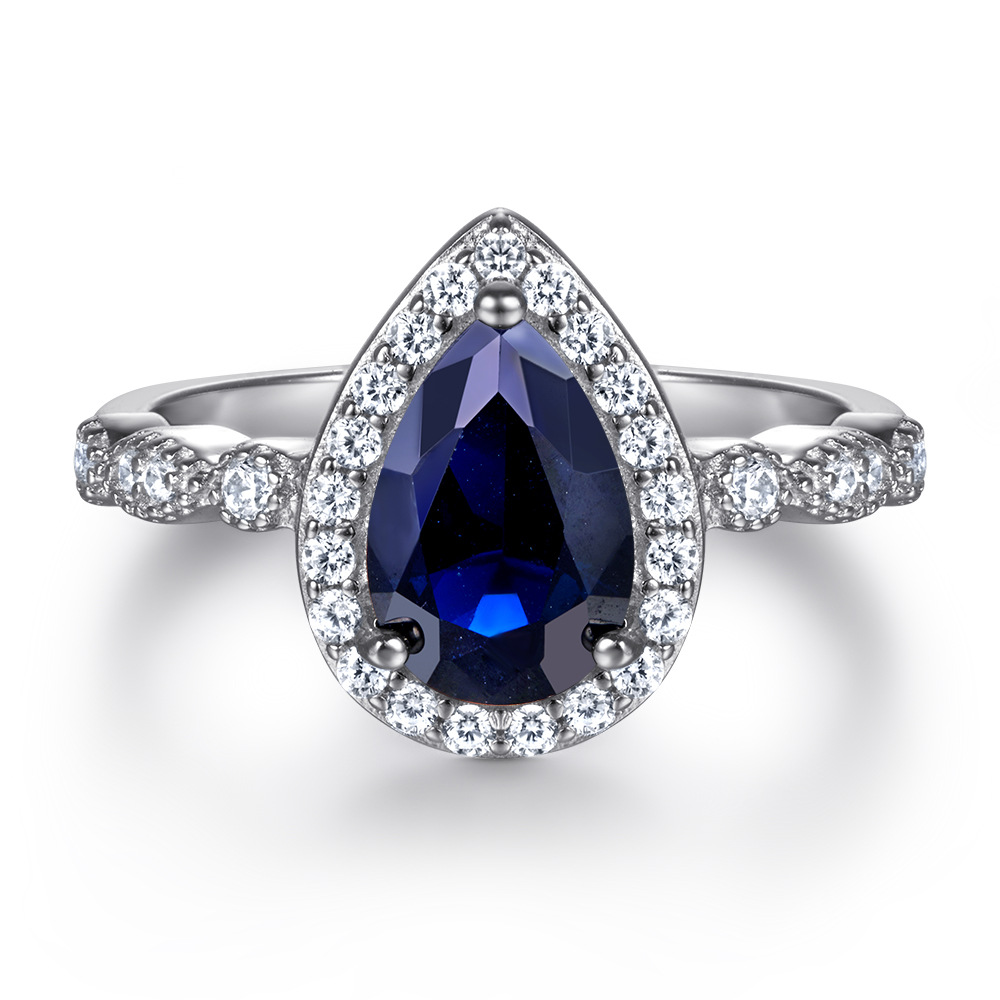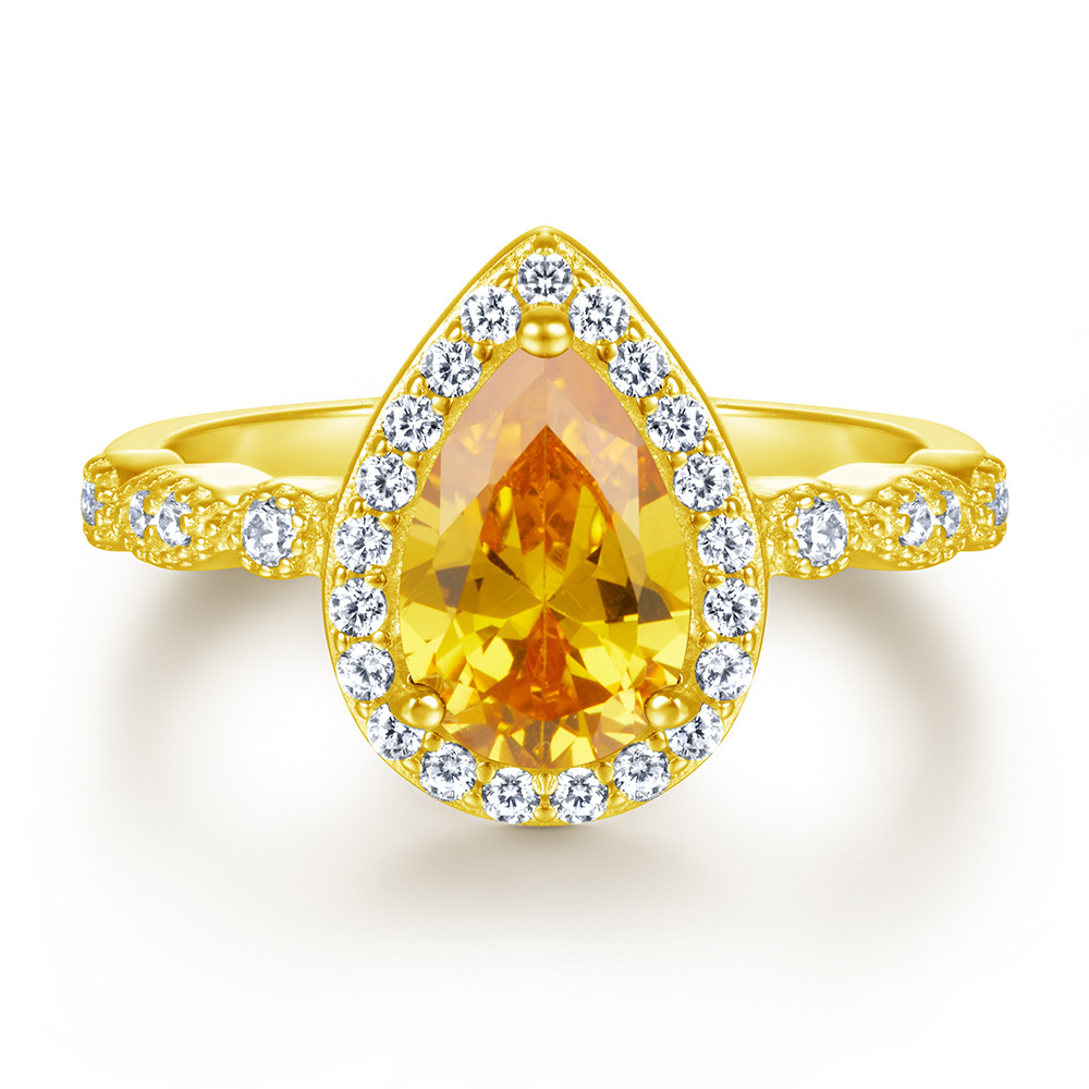 S925 sterling silver inlaid with water drops colored zircon ring