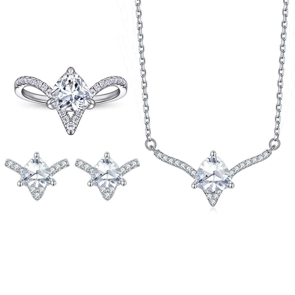 S925 sterling silver jewelry set ring three-piece set women’s ring pear-shaped zircon earrings water drop necklace cold style