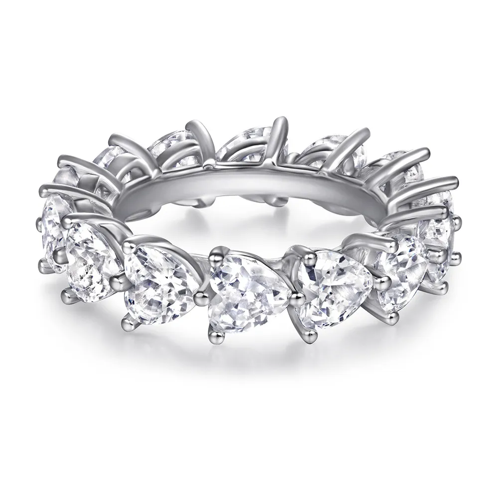 S925 sterling silver jewelry set fashion heart shaped zircon full diamond ring love stud earrings necklace