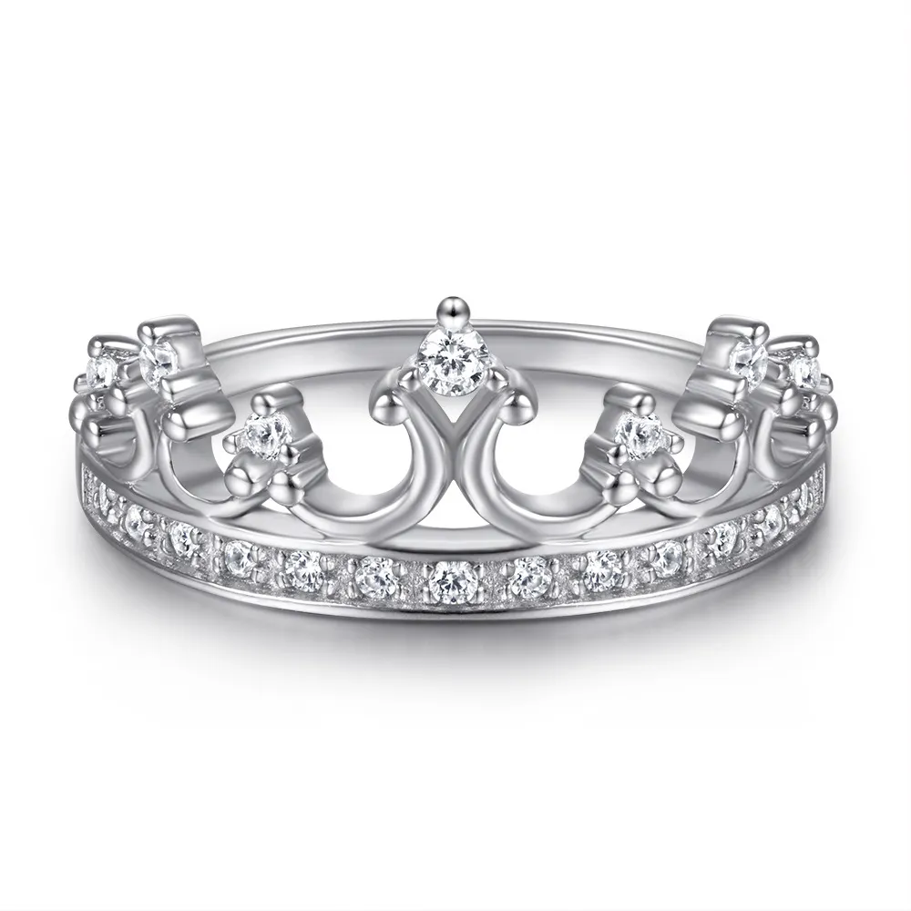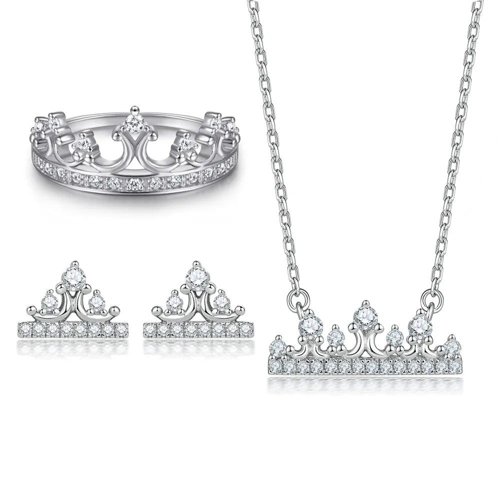 S925 Sterling Silver Jewelry Set of Three Crown Ring Stud Earrings Necklace Silver Jewelry Set