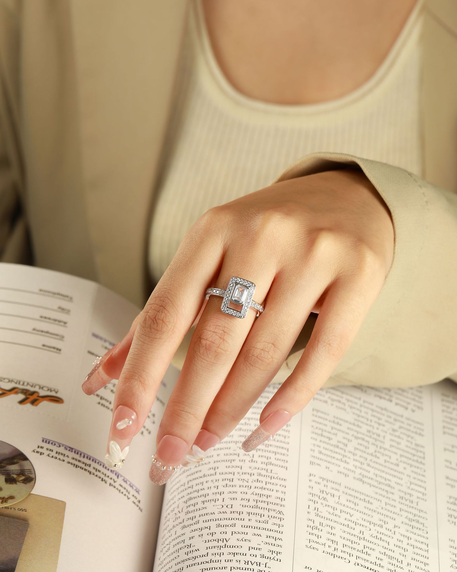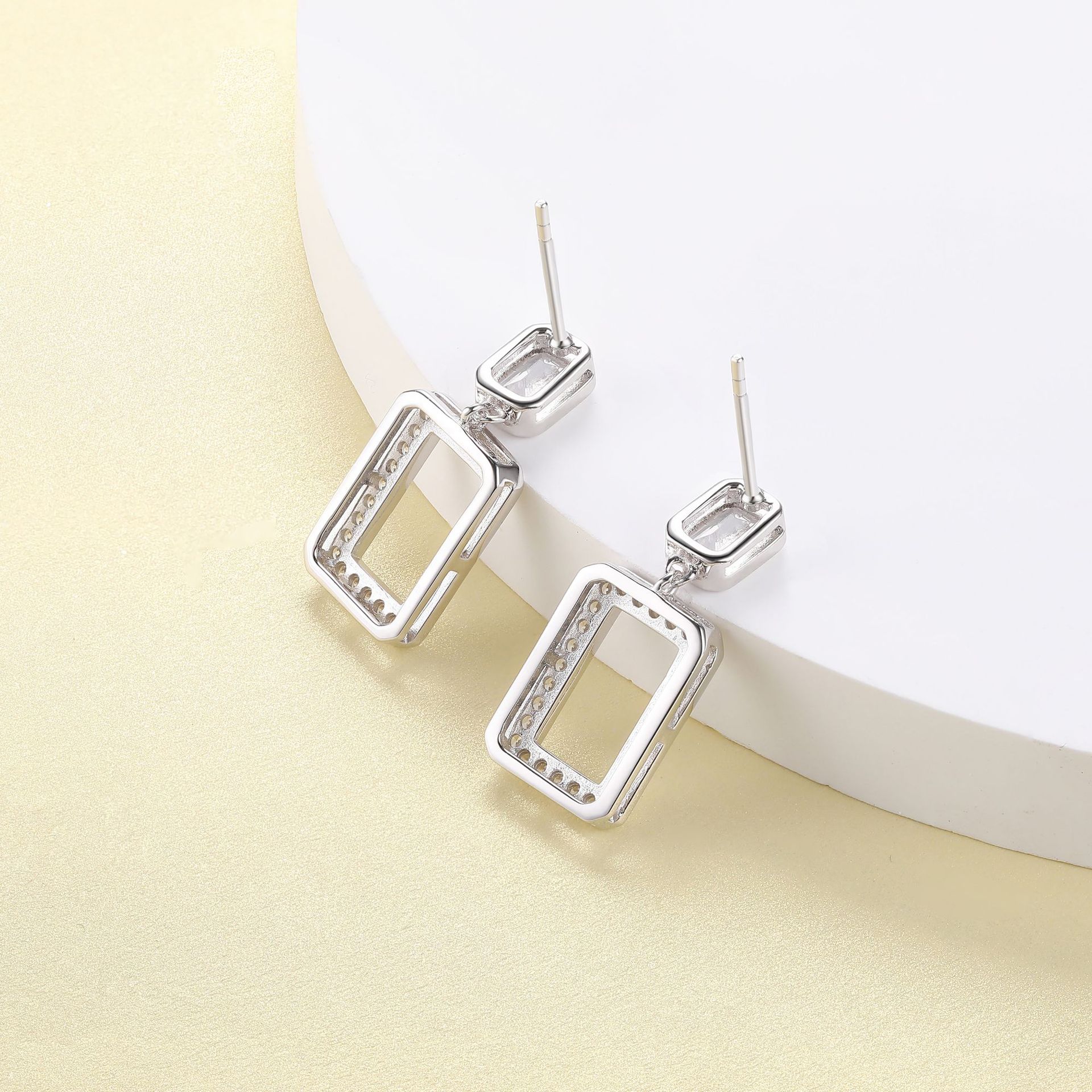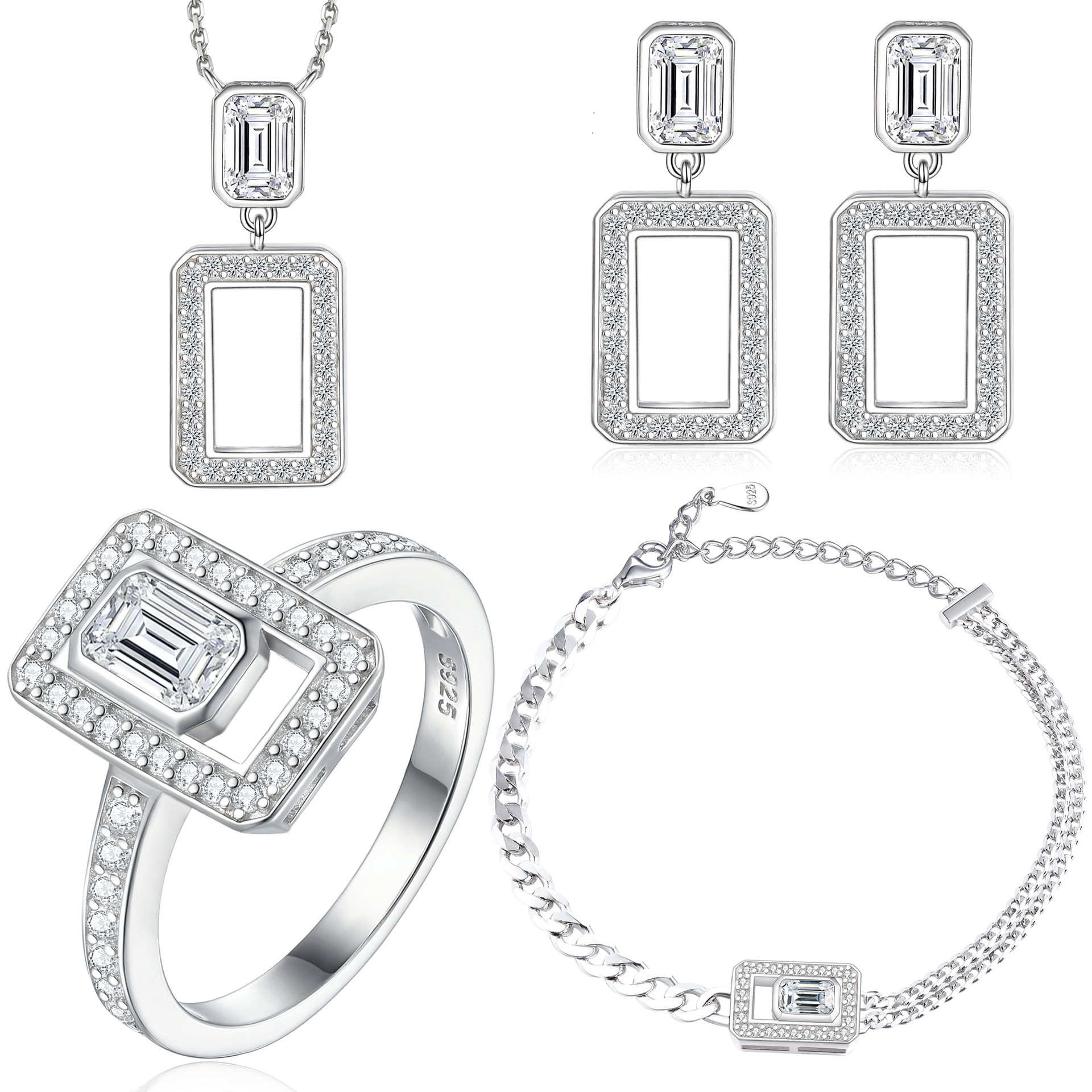 S925 sterling silver jewelry set four-piece square diamond ring earrings necklace fashion bracelet
