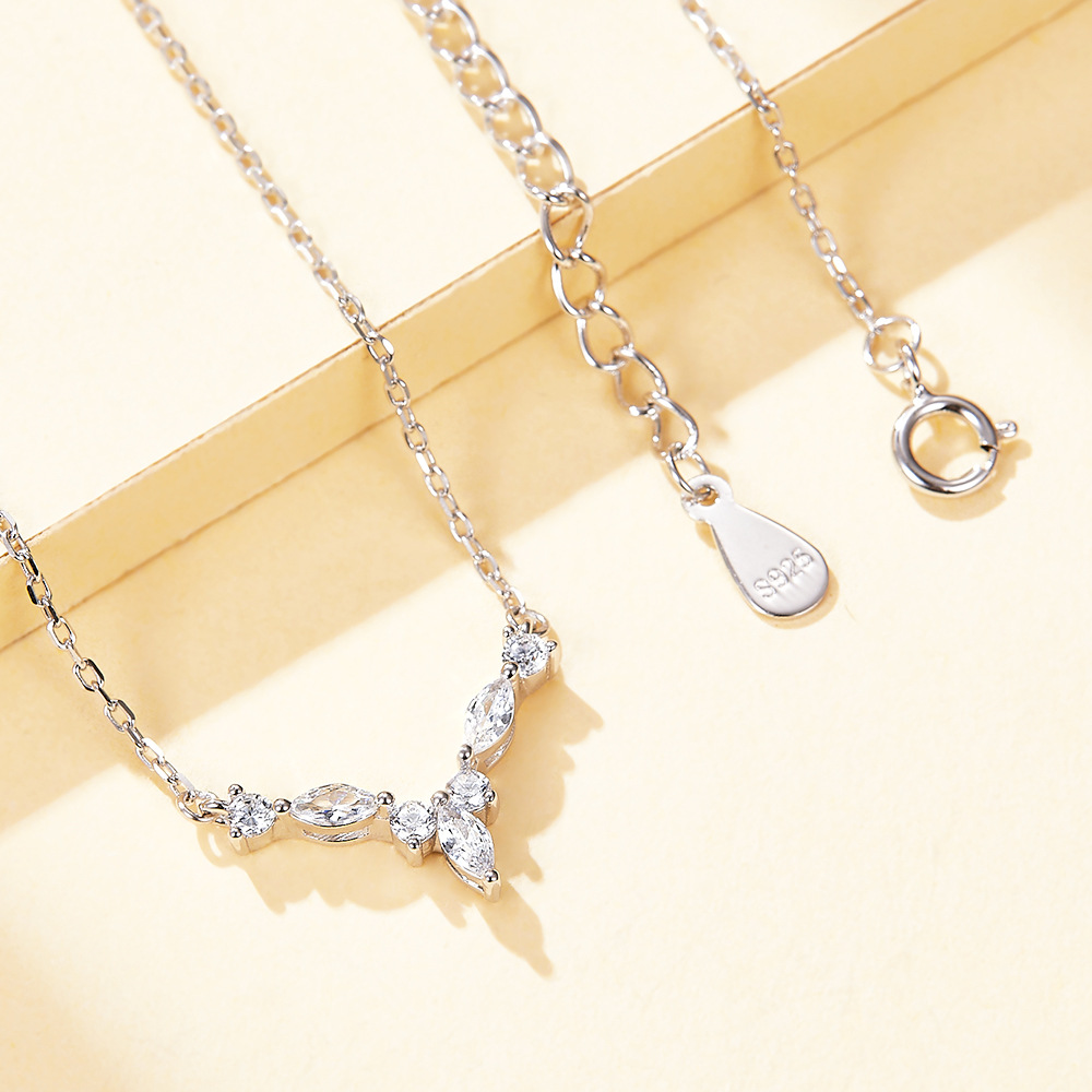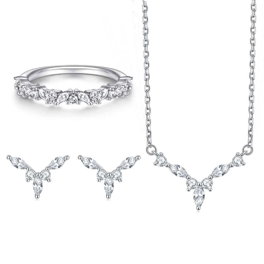 S925 Sterling Silver Jewelry Set Marquise Zircon Ring Crystal Necklace Flower Earrings