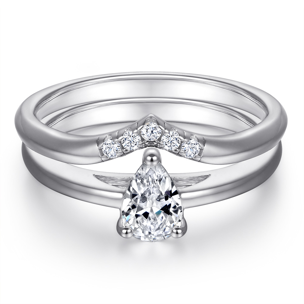 S925 sterling silver jewelry set pear shaped zircon earrings ring set water droplet necklace