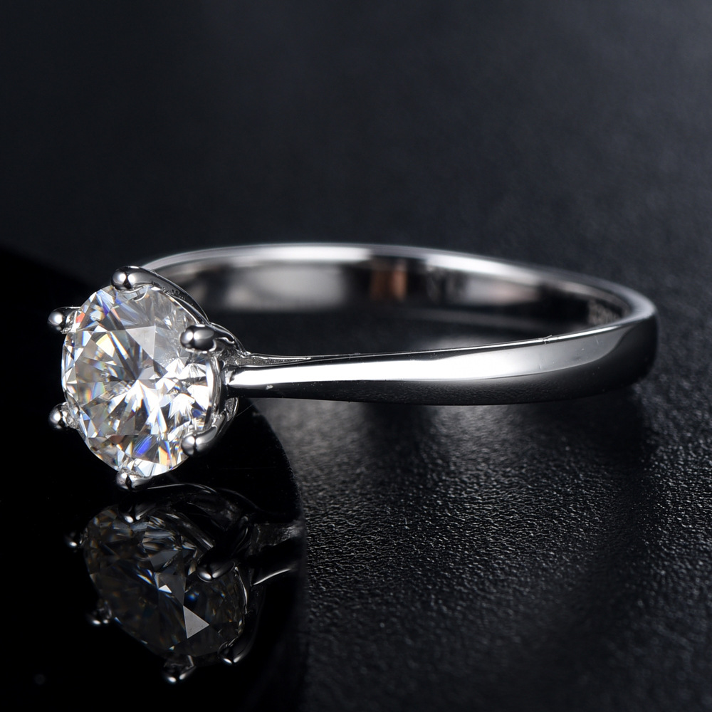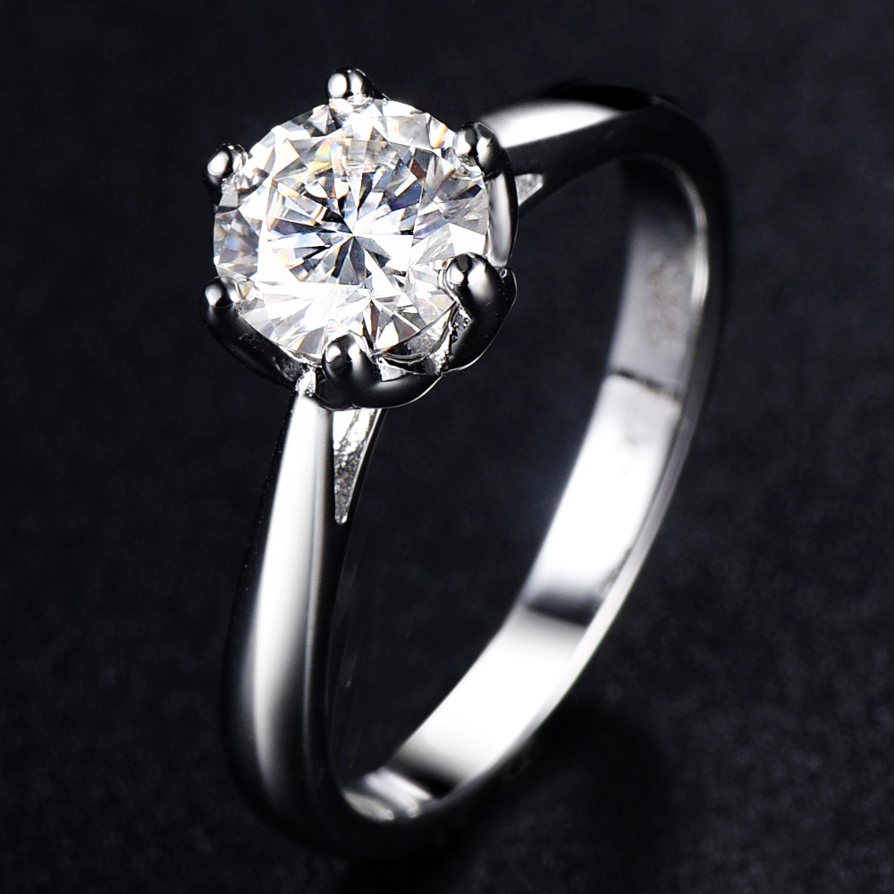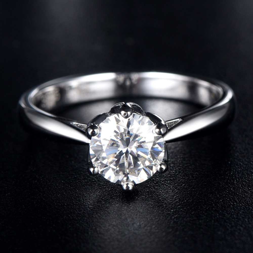 S925 sterling silver ladies moissanite ring with one carat grade D moissanite diamond ring wedding ring wholesale