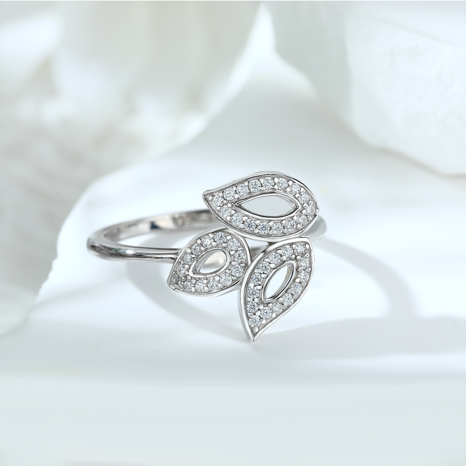 S925 sterling silver leaf leaf micro inlaid zircon ring women’s niche design wedding ring European and American pure silver women’s ring rings