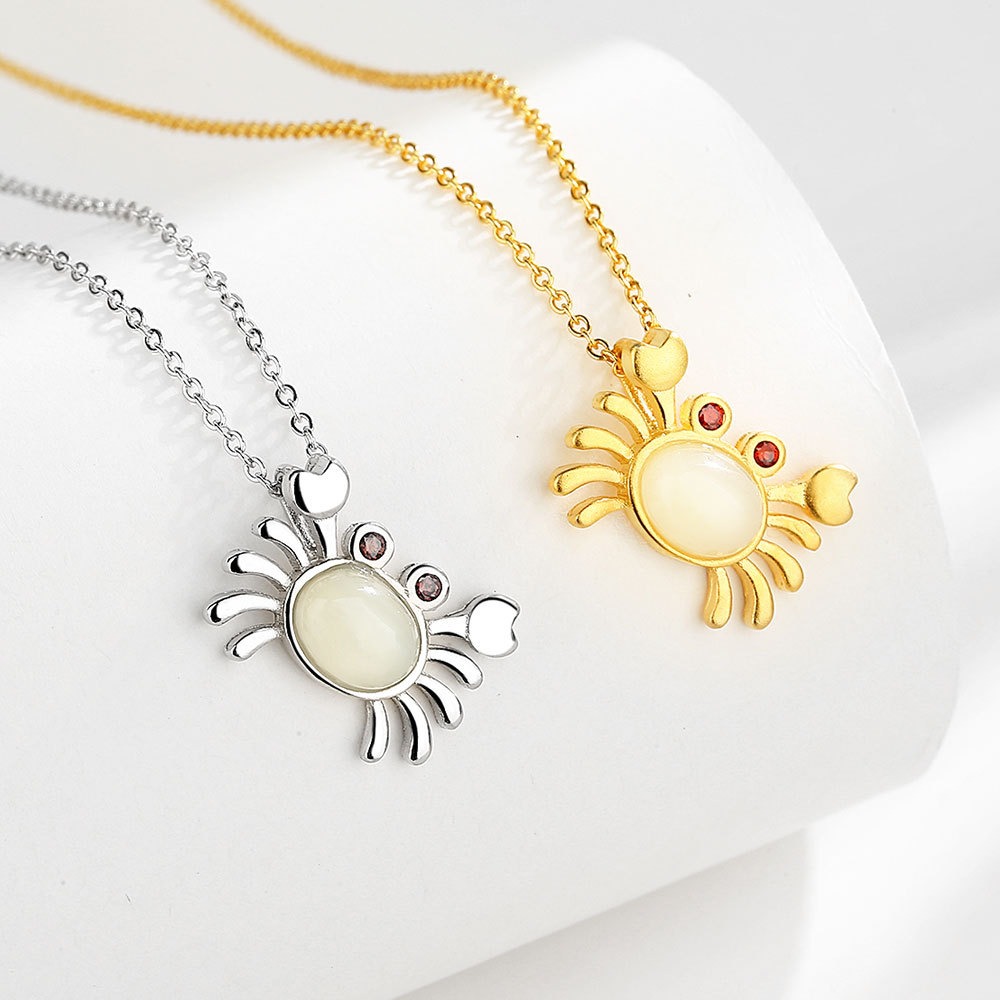 S925 sterling silver necklace and Tian jade crab pendant clavicle chain