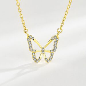 S925 sterling silver necklace butterfly pendant clavicle chain