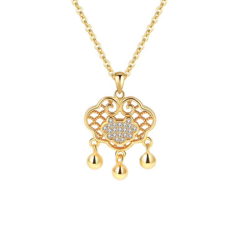 S925 sterling silver necklace Chinese style longevity lock pendant clavicle chain