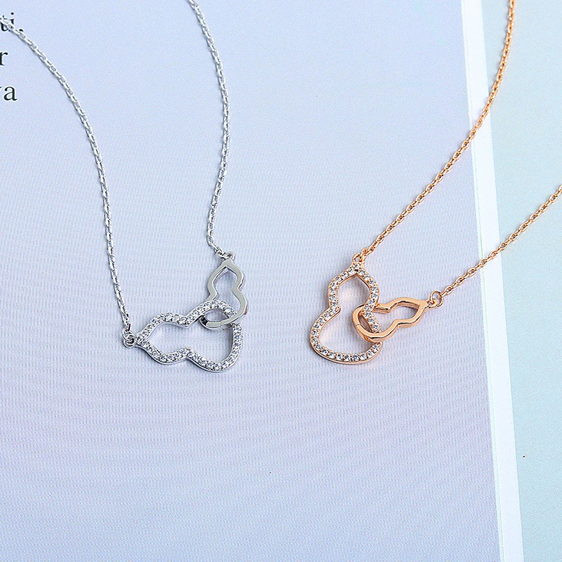 S925 sterling silver necklace double gourd pendant clavicle chain