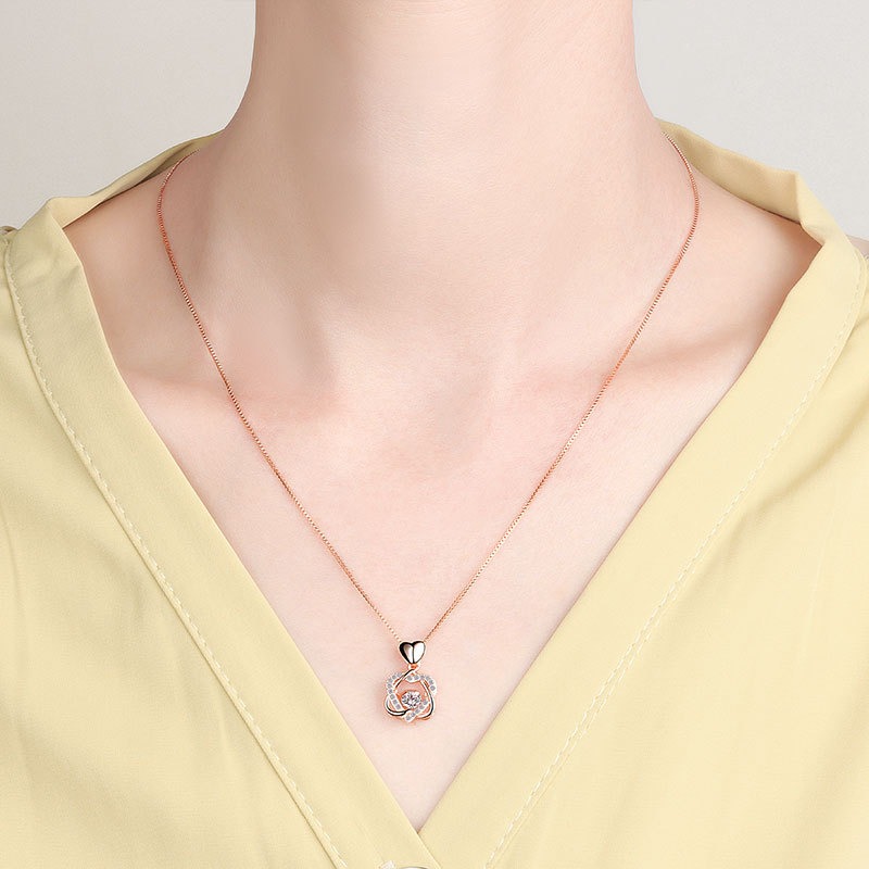 S925 sterling silver necklace double heart pendant clavicle chain