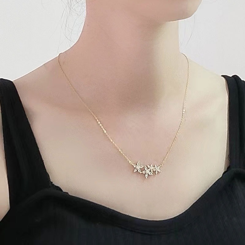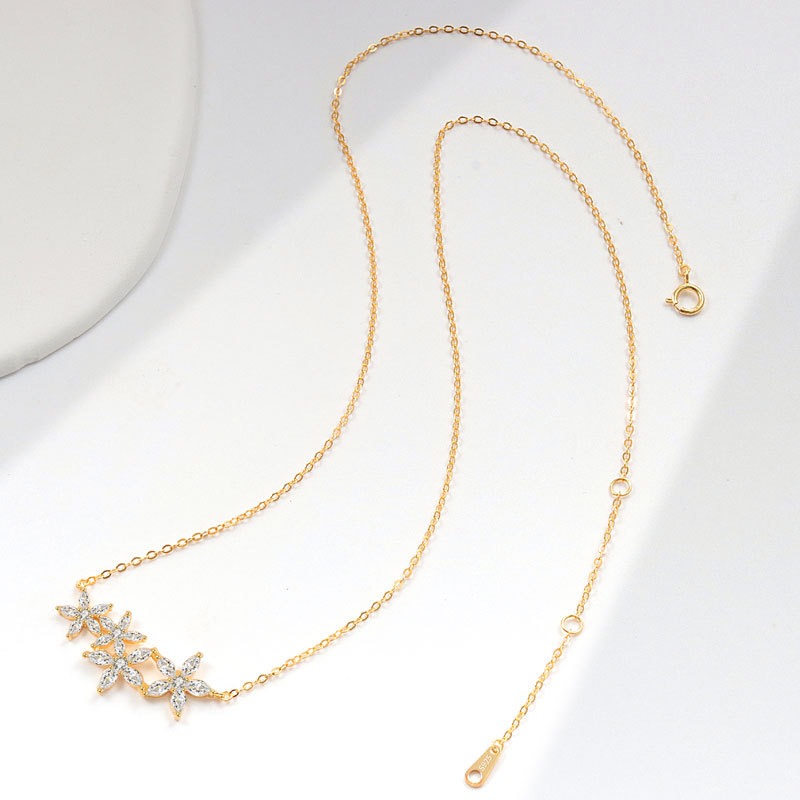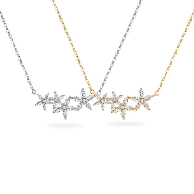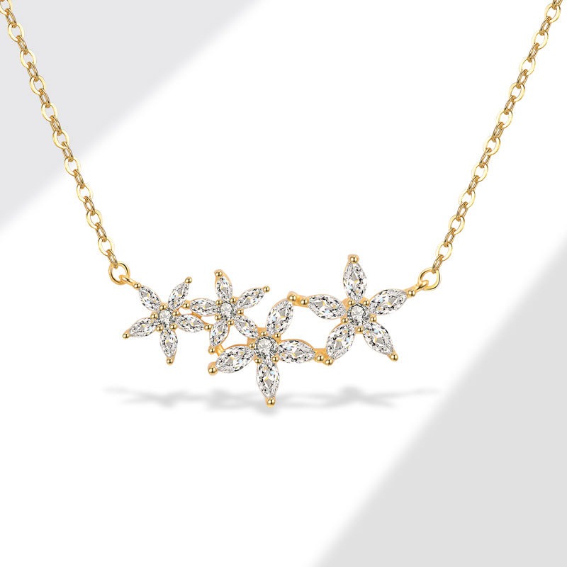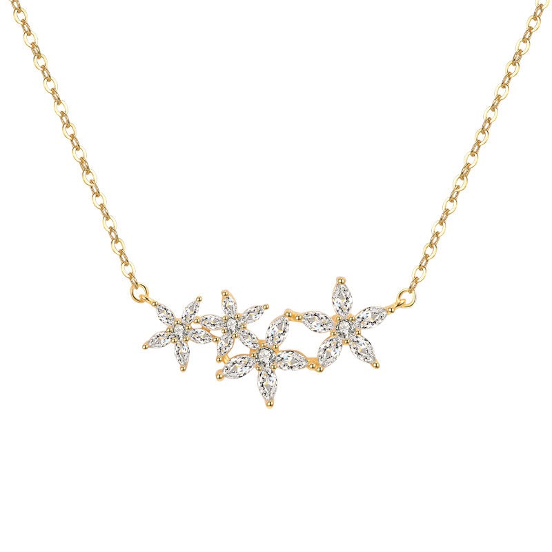 S925 sterling silver necklace flower shape inlaid with zircon pendant clavicle chain