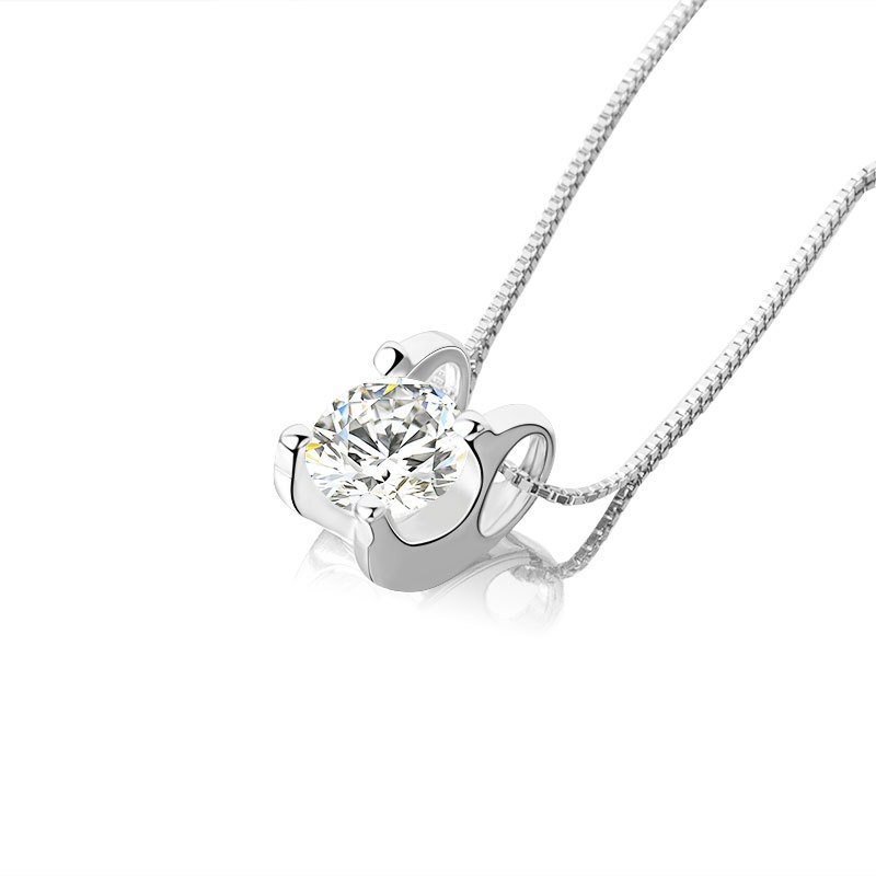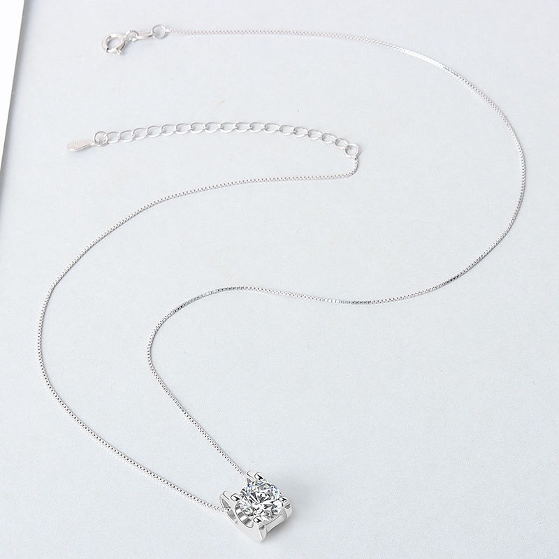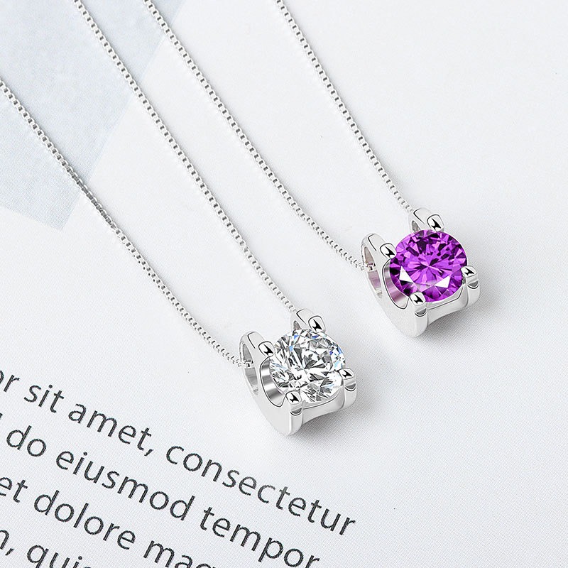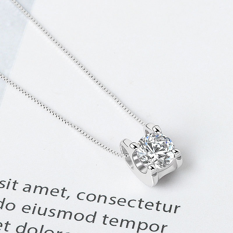 S925 sterling silver necklace four claws round zircon pendant clavicle chain