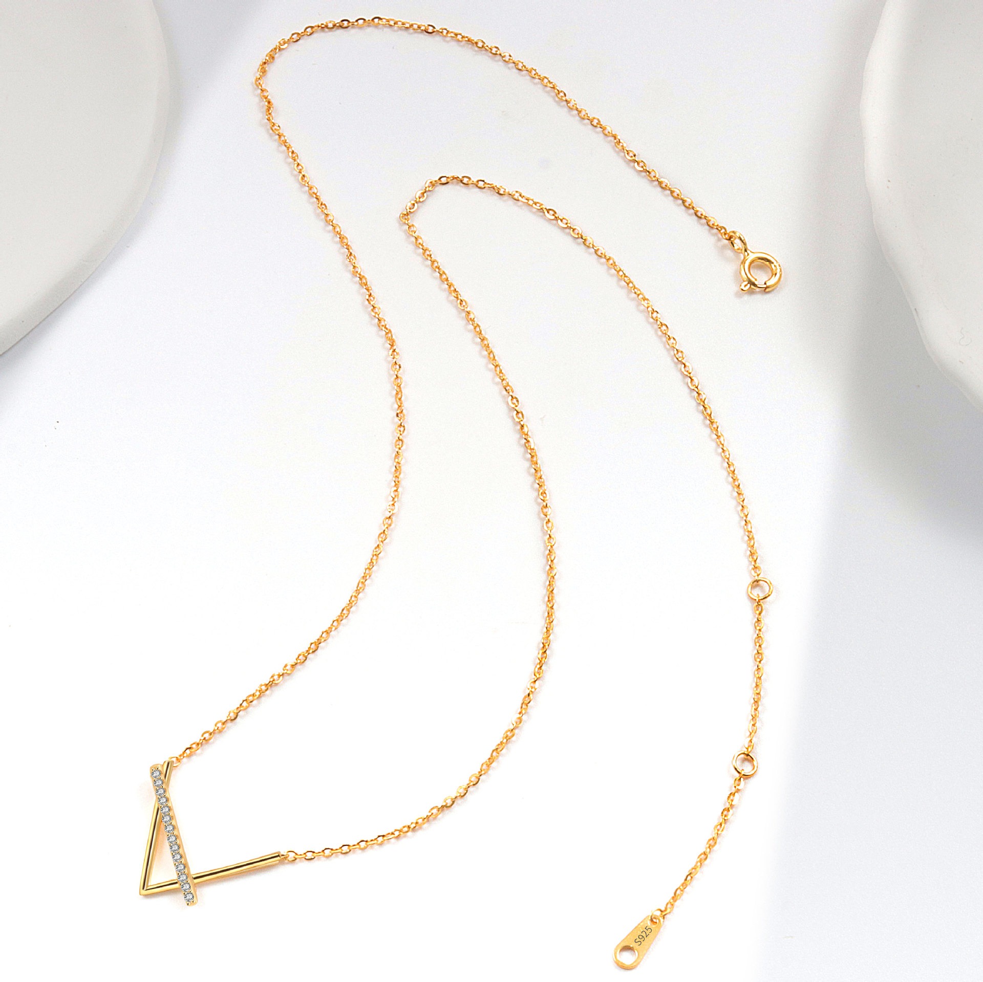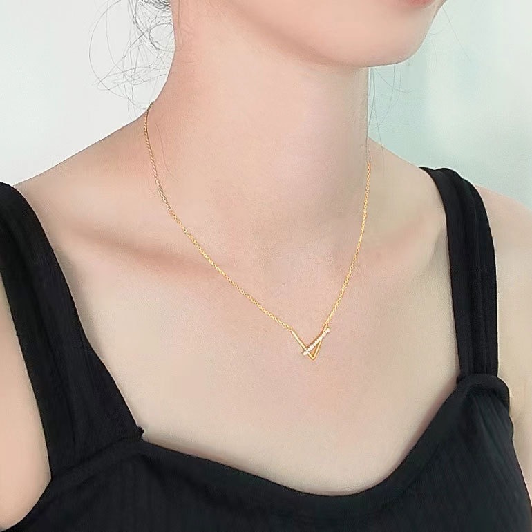 S925 sterling silver necklace geometric V pendant clavicle chain