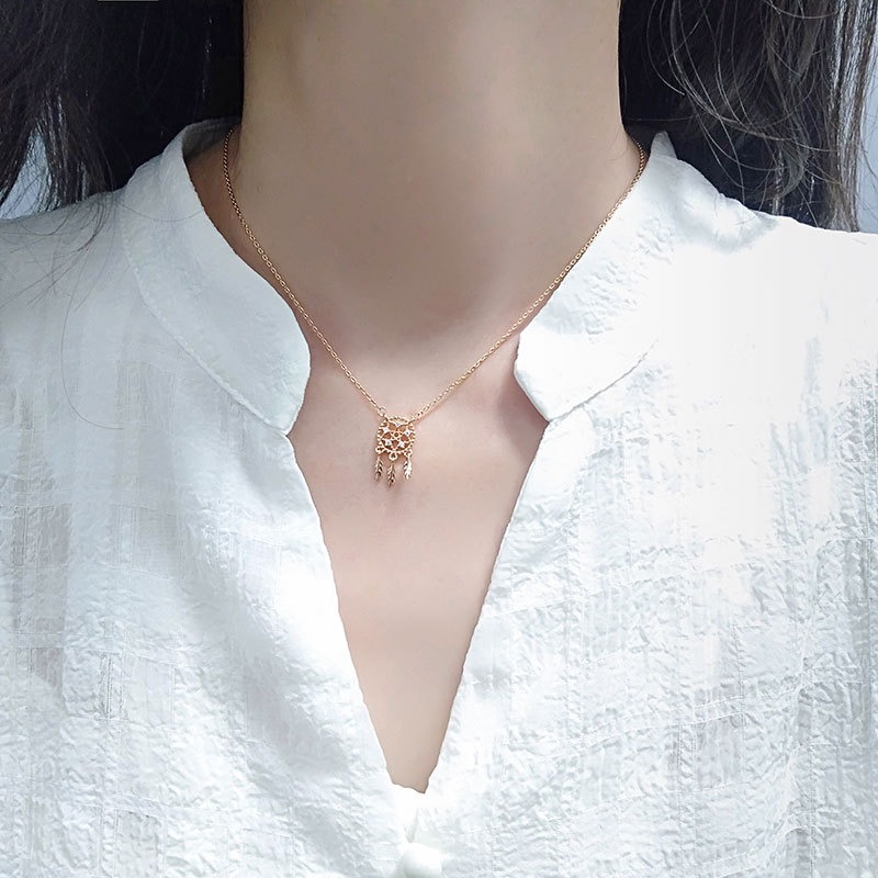 S925 sterling silver necklace ginkgo biloba dreamcatcher pendant clavicle chain