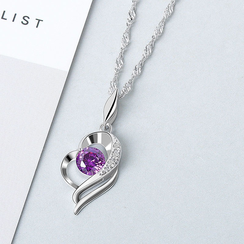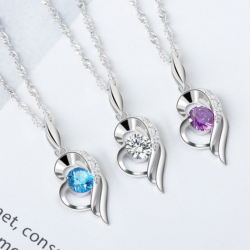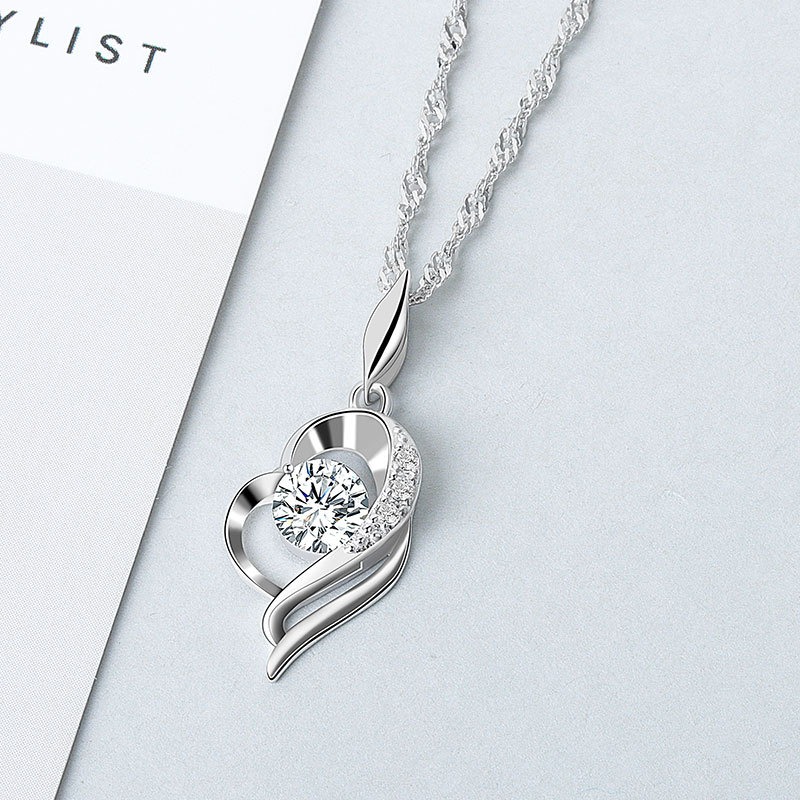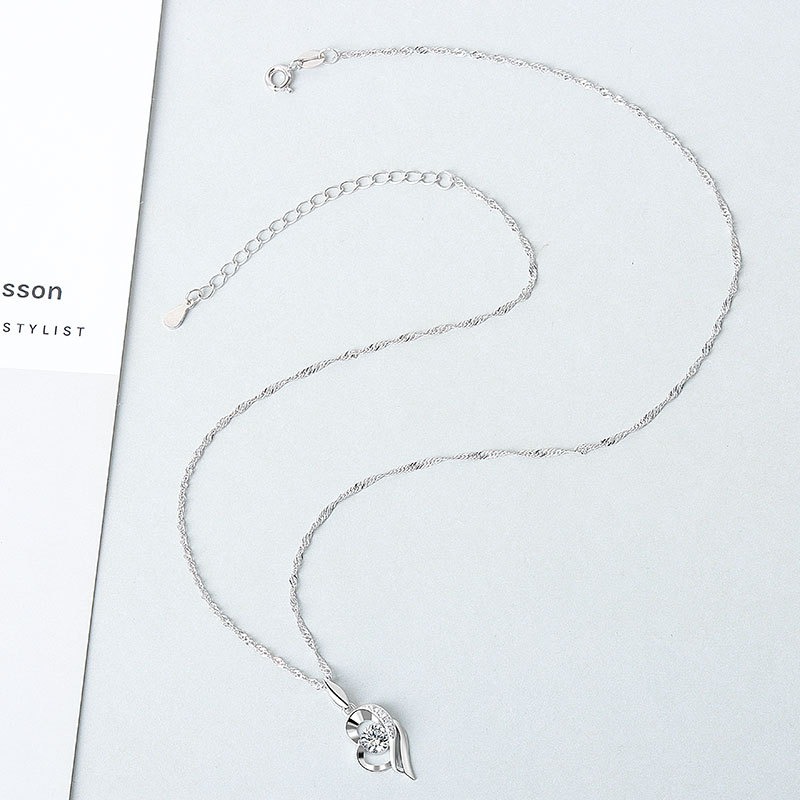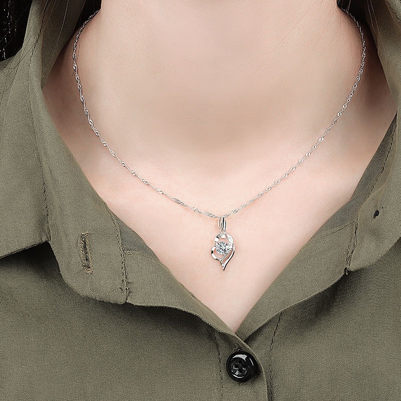 S925 sterling silver necklace heart pendant water wave chain