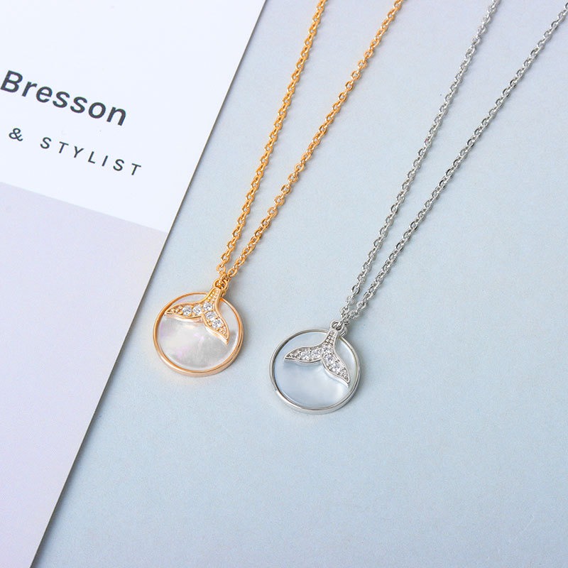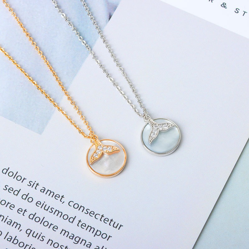 S925 sterling silver necklace hollow fishtail pendant clavicle chain