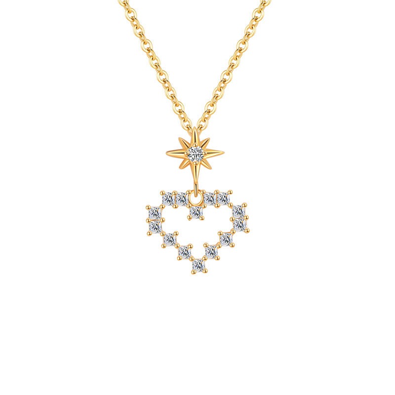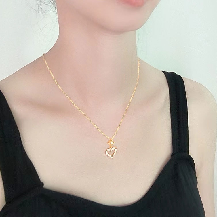 S925 sterling silver necklace hollow heart pendant clavicle chain