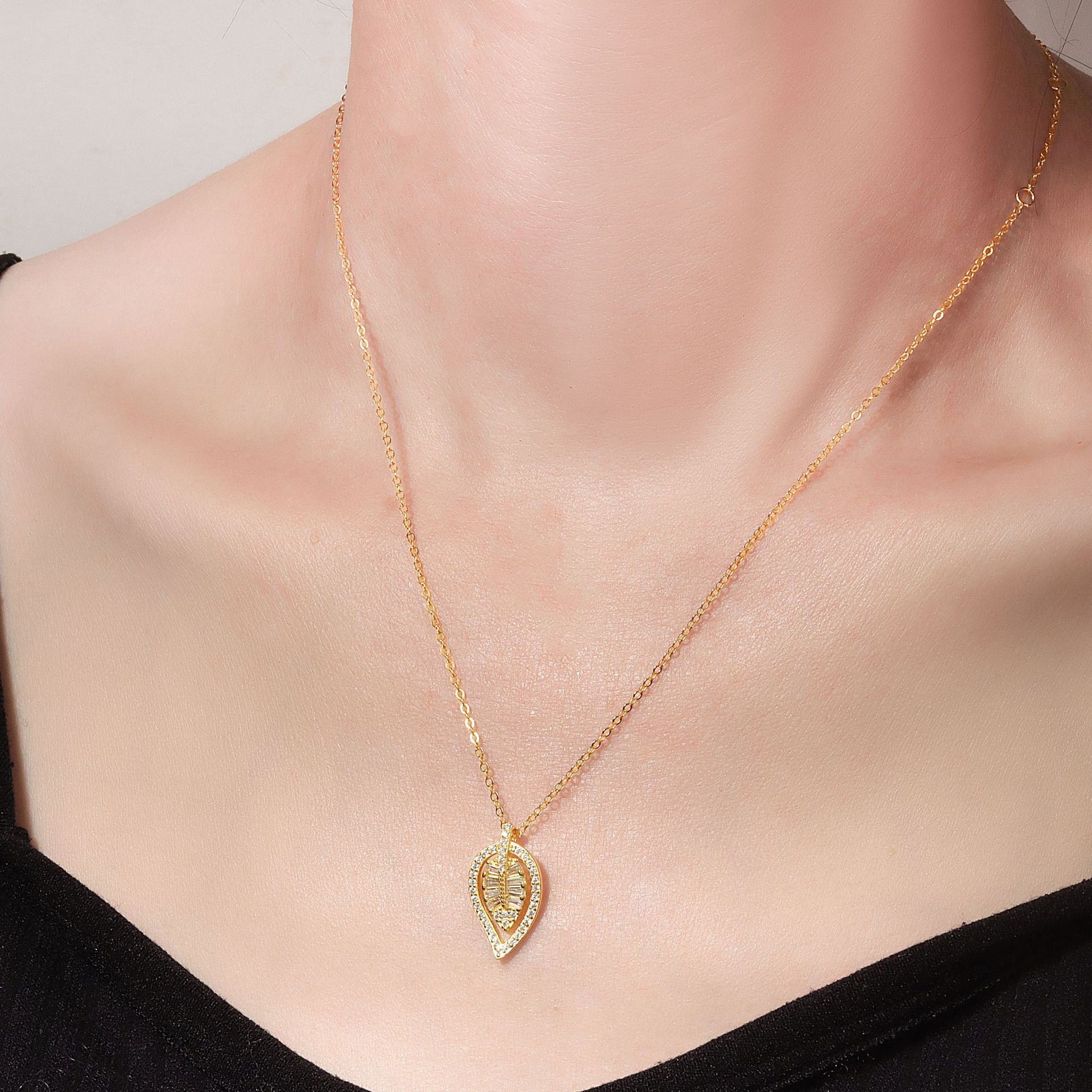 S925 sterling silver necklace leaf pendant clavicle chain