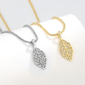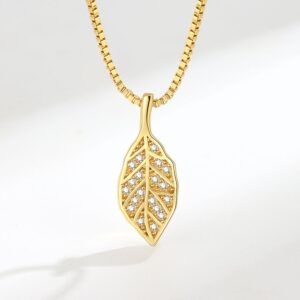 Jewelry set of three 925 sterling silver full diamond leaf ring leaf necklace women’s flower earrings