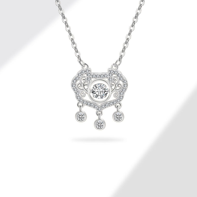 S925 sterling silver necklace longevity lock bell pendant clavicle chain