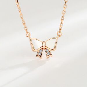 S925 sterling silver necklace mother-of-pearl bow pendant clavicle chain